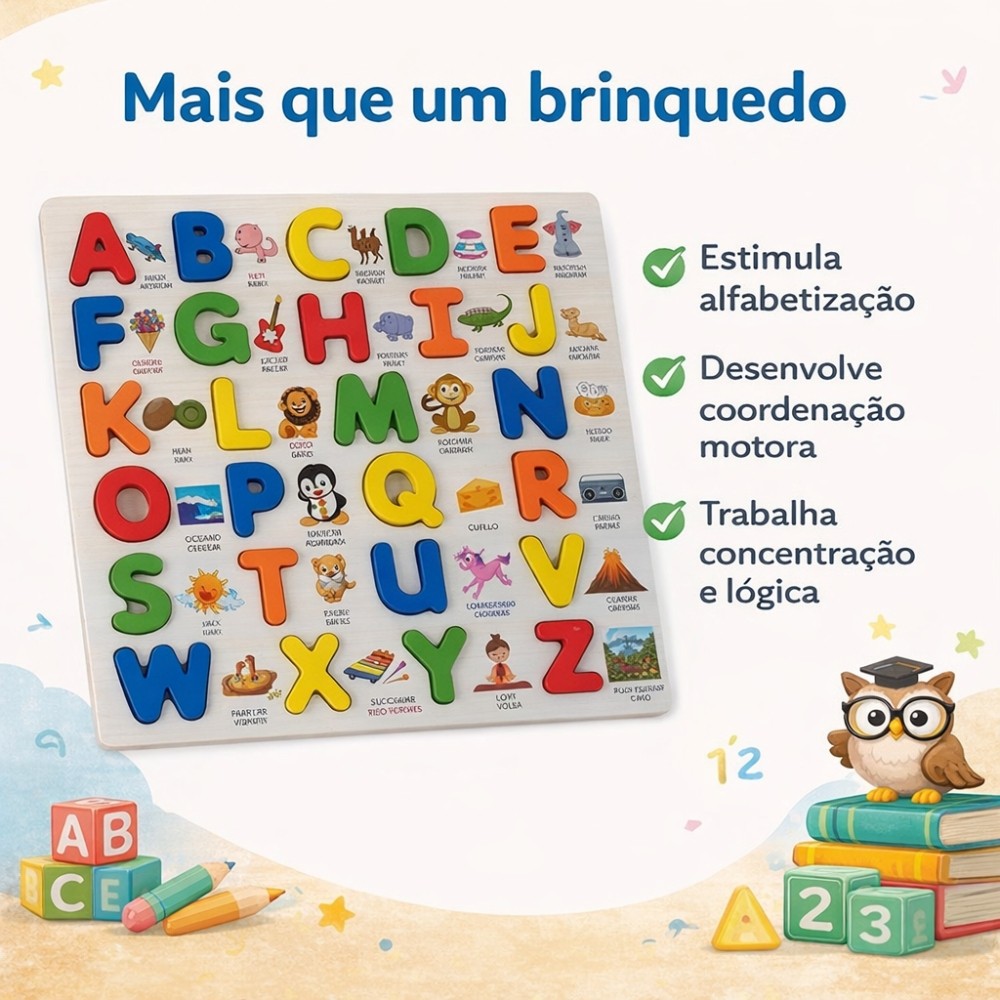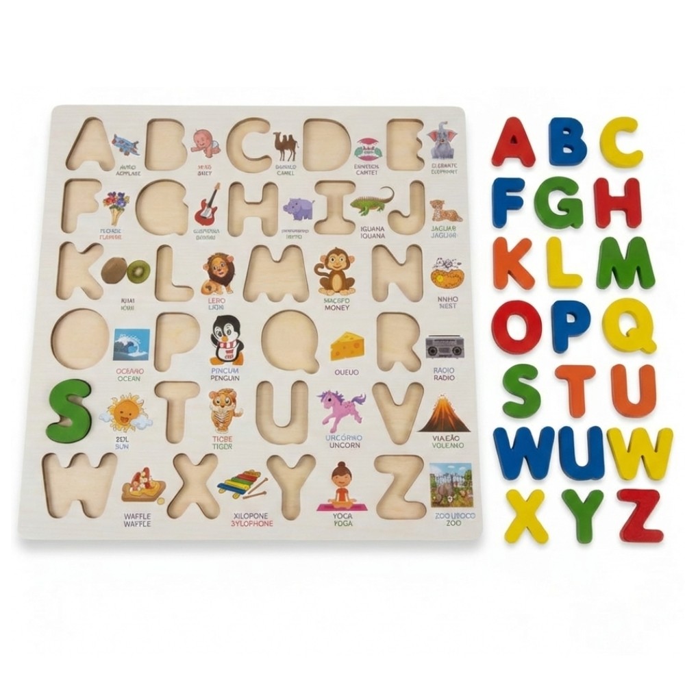 Brinquedo Alfabeto Infantil Montessori de Madeira Educativo Para Alfabetização