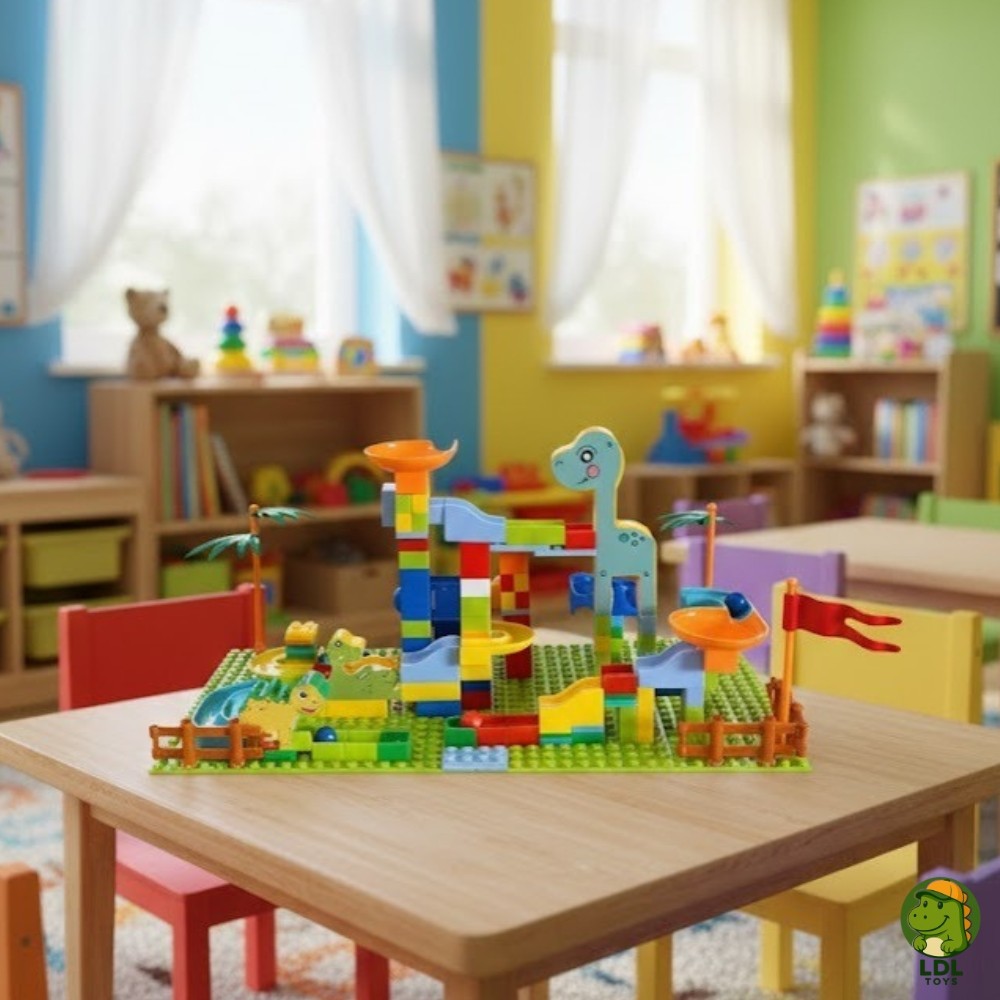 Pista Labirinto Dinossauro Blocos De Montar Mágica 260 Peças Escorrega Bolinha Educativo