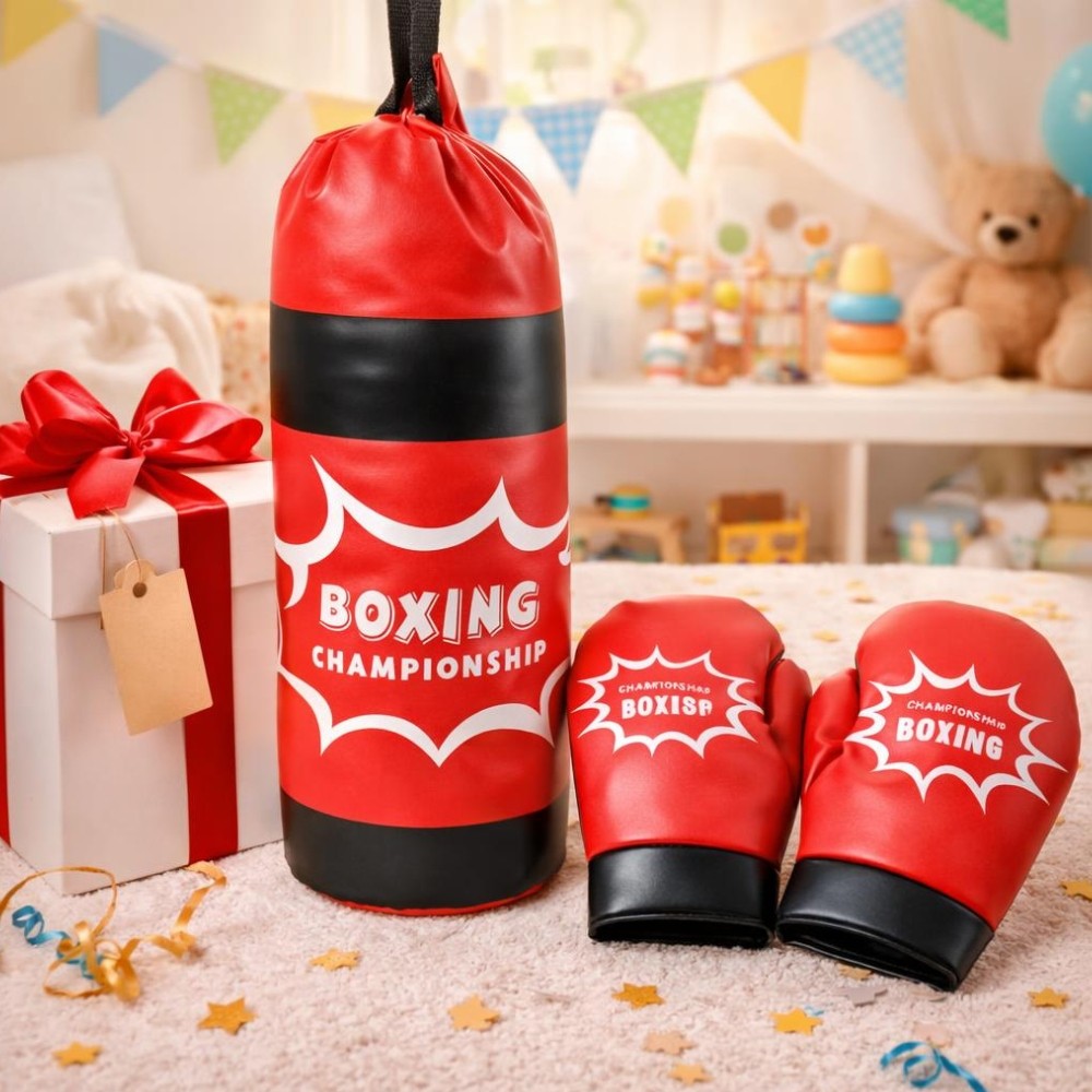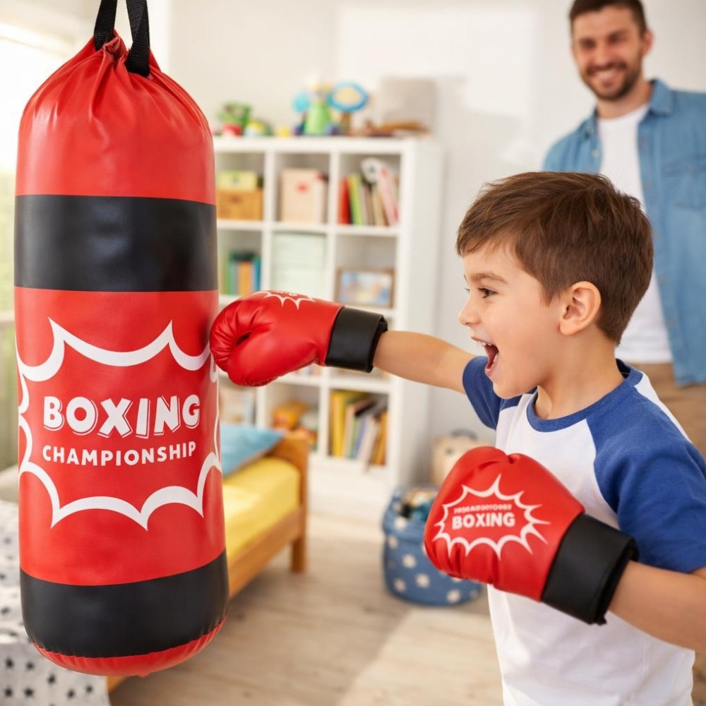 Kit Boxe Infantil Com Luvas e Saco Pancada Diversão e Coordenação Motora Treino Criança