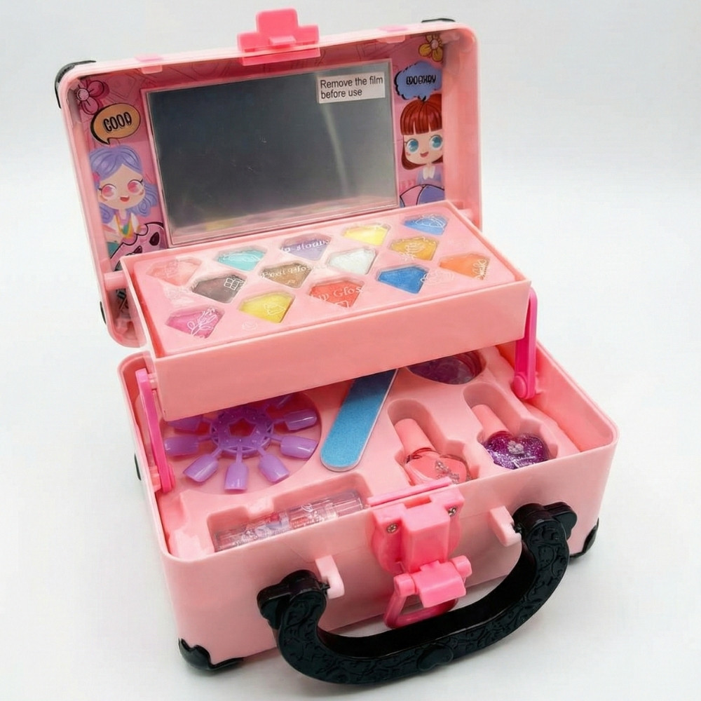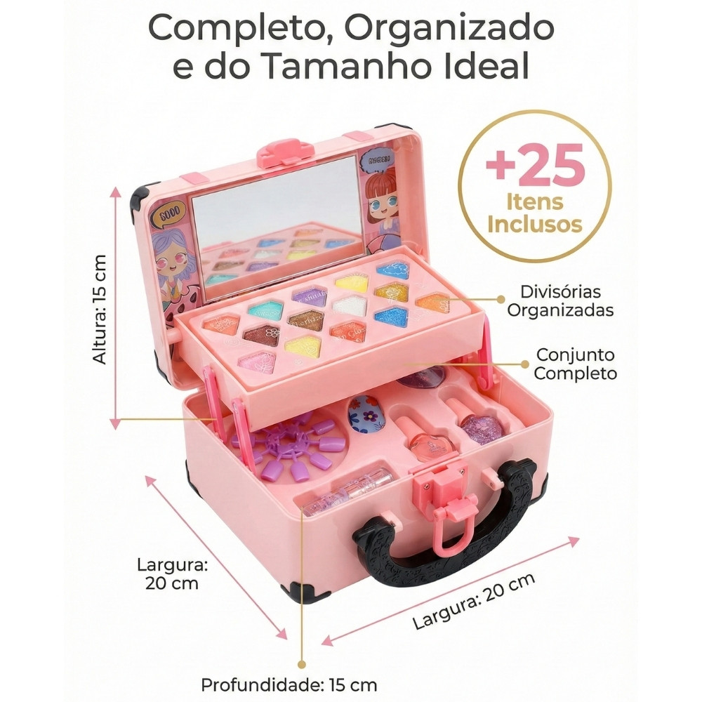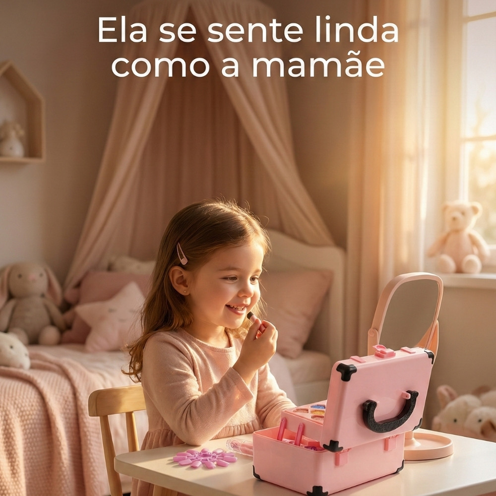 Kit Conjunto Maleta De Maquiagem Infantil Lavável Presente Criança Linda