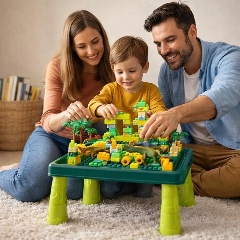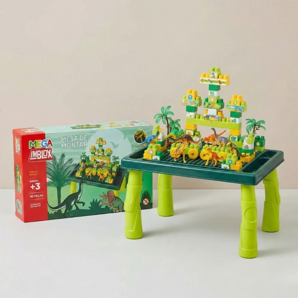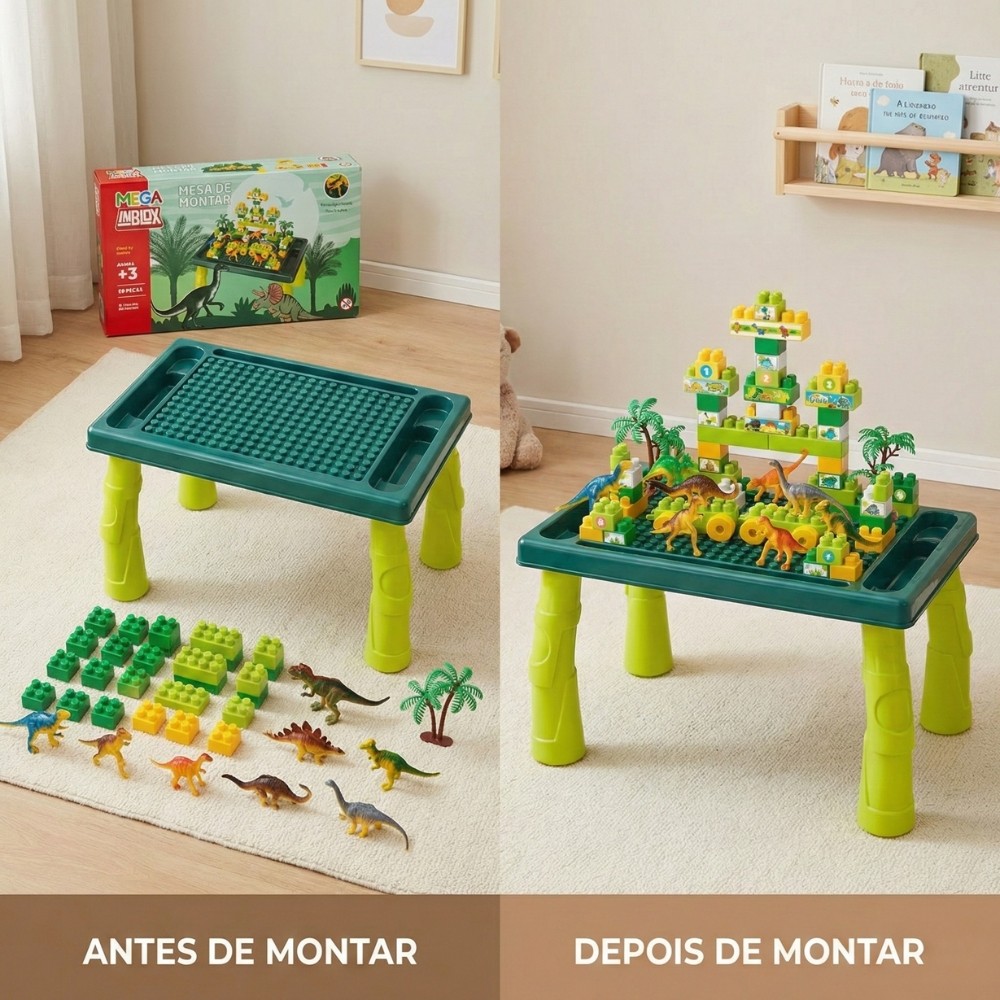 Mesa de Montar Infantil Parque Dinossauros Interativa 80 Peças Educativo Brinquedo