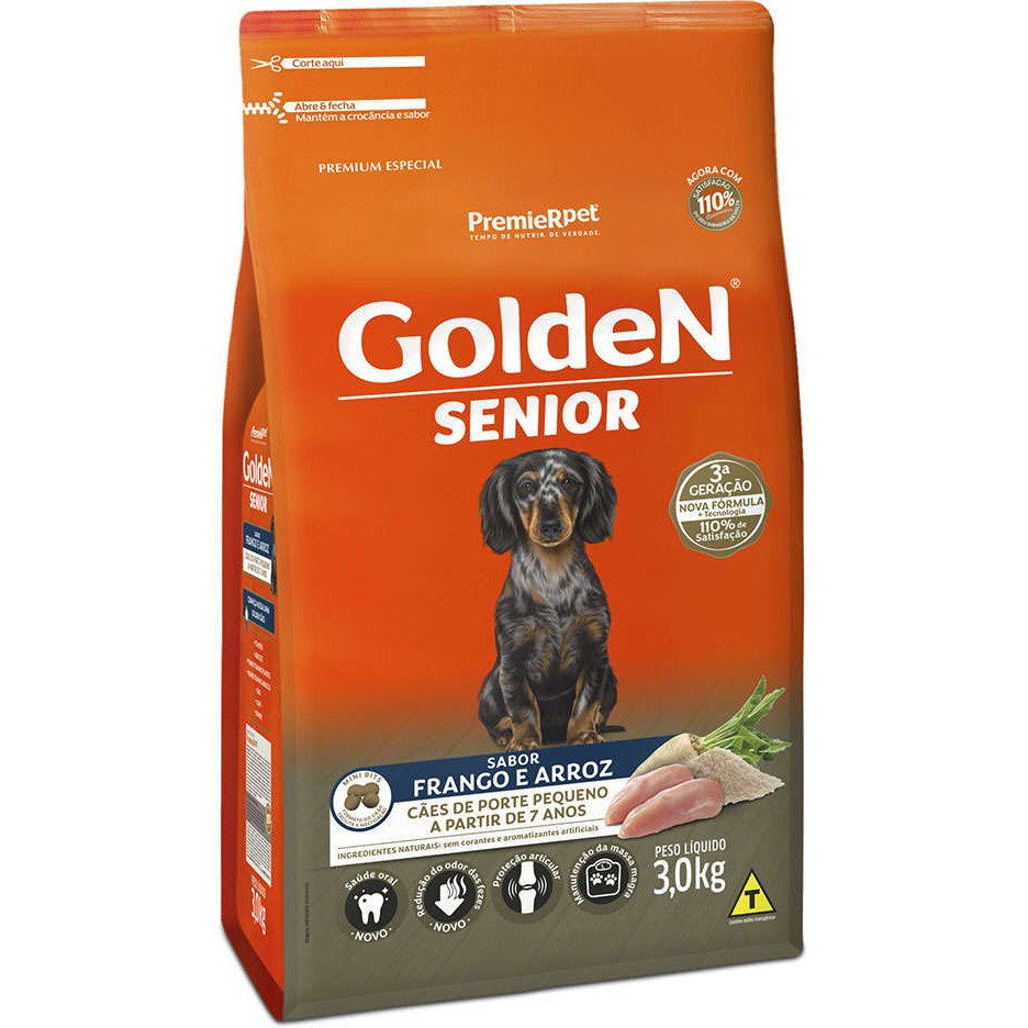Ração 3Kg Golden Cães Sênior Raças Pequenas Mini Bites Frango e Arroz