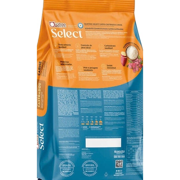 Ração 10,1Kg QUATREE SELECT Gatos Castrados Carne