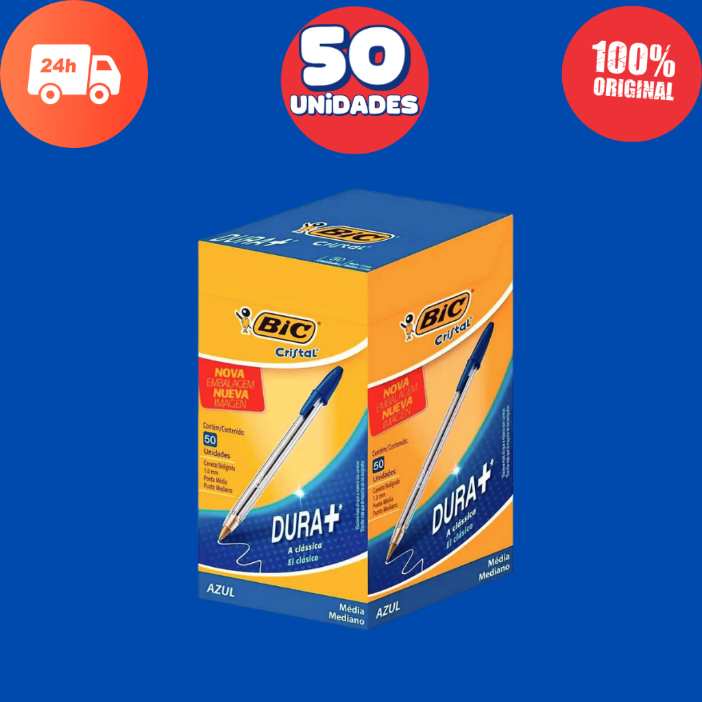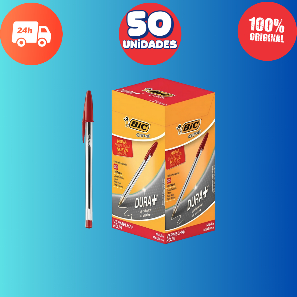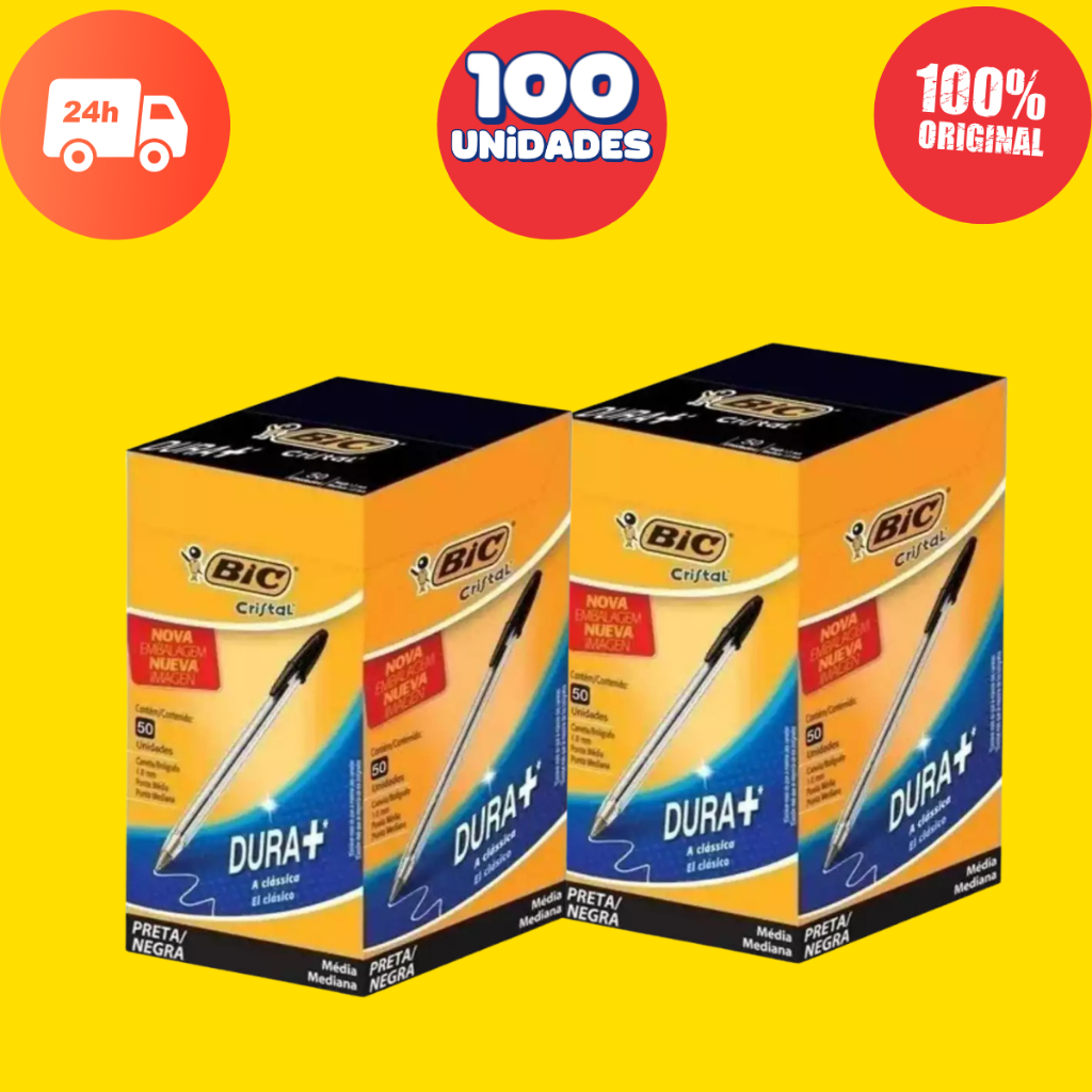 Kit 2x Caneta Bic Cristal Azul Vermelha Preta 100 Canetas