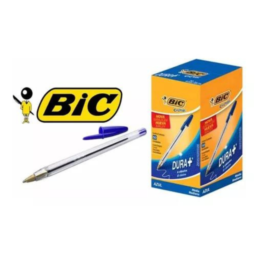 Kit 2x Caneta Esferográfica Bic Azul Cristal Média 1.0mm C. 50 Unidades
