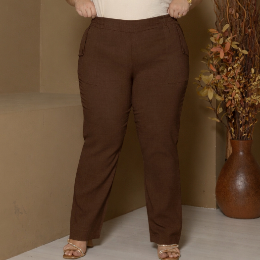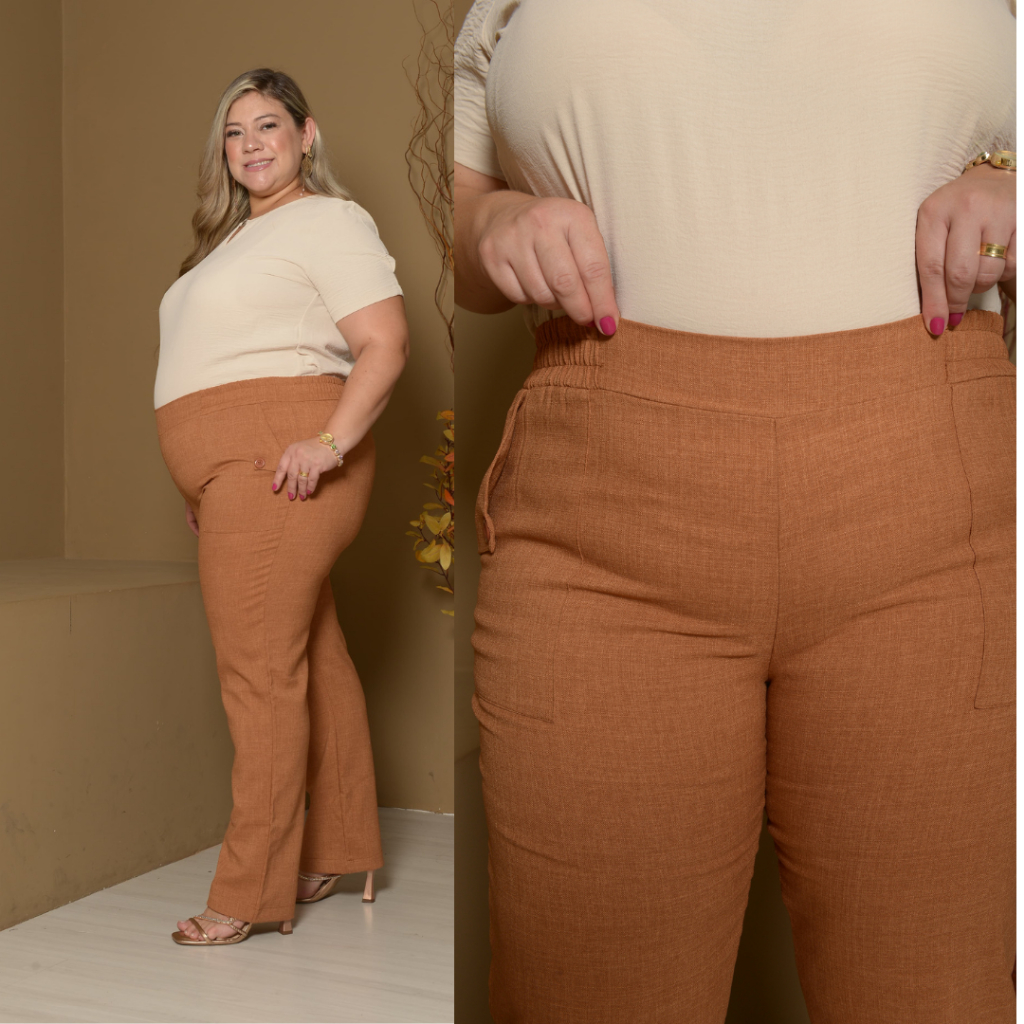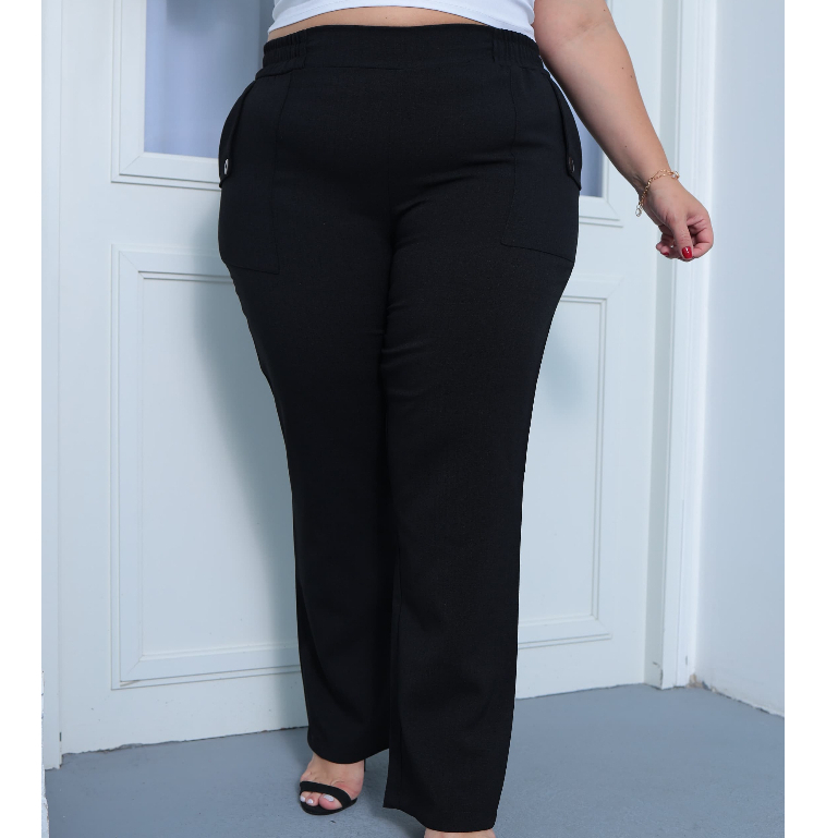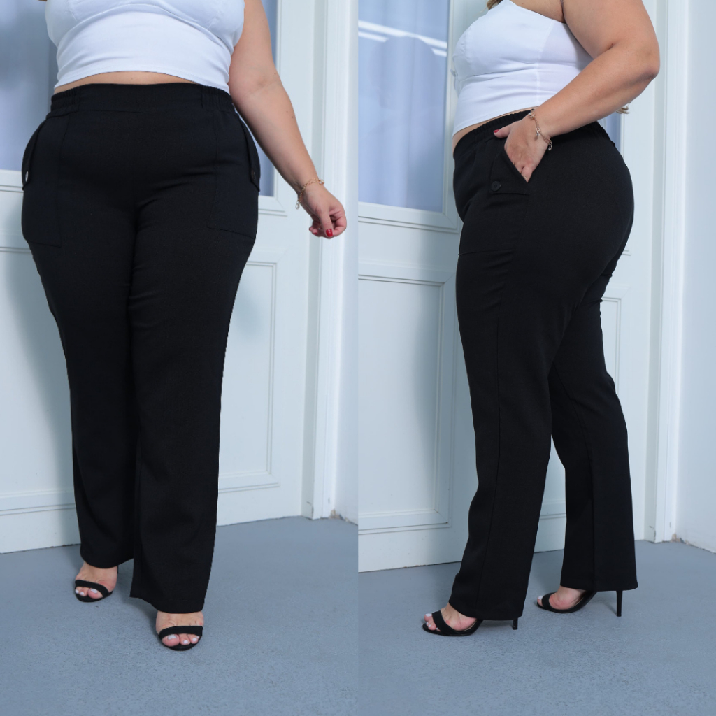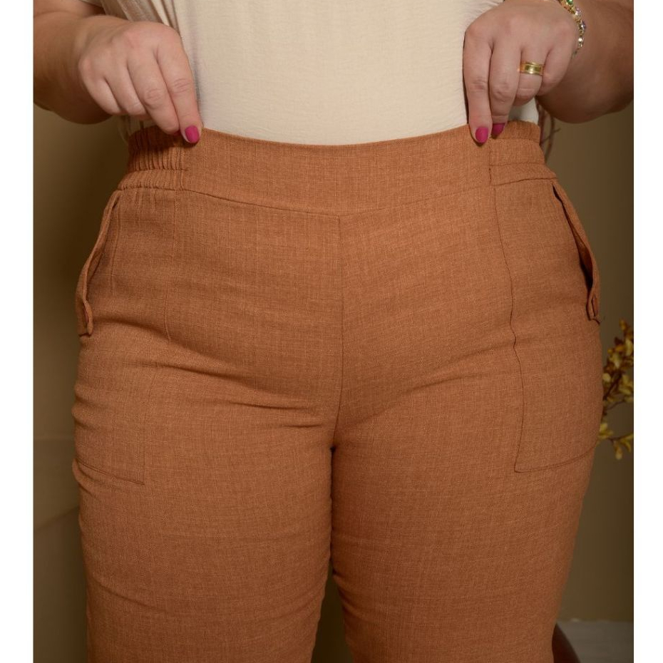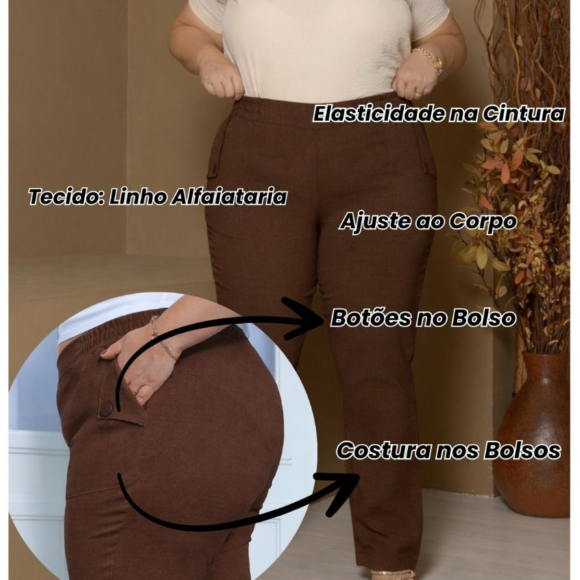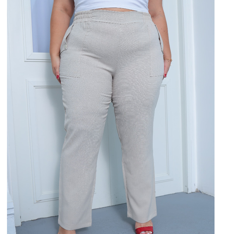 Calça Social Feminina - Plus Size - Calça Linho - Estilo ao Corpo com Bolsos Laterais e Botões , Visual Sofisticado
