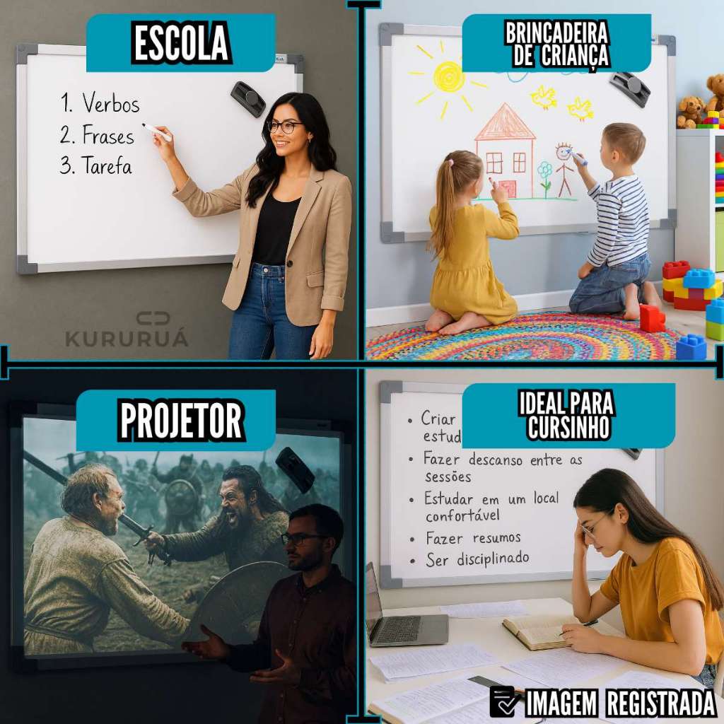 Lousa Branca Grande Quadro Branco Anotações + 4 Canetas