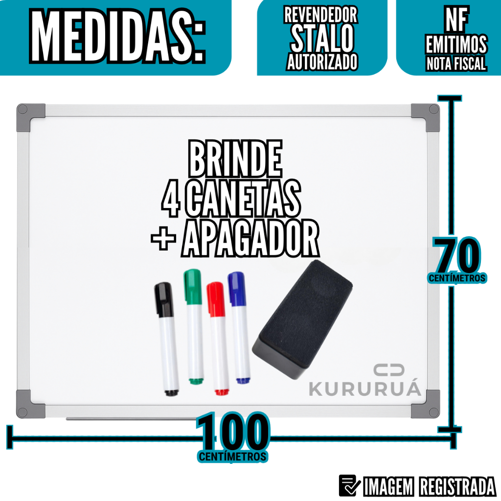 Lousa Branca Grande 120x90 Quadro Branco Anotações + 4 Canetas