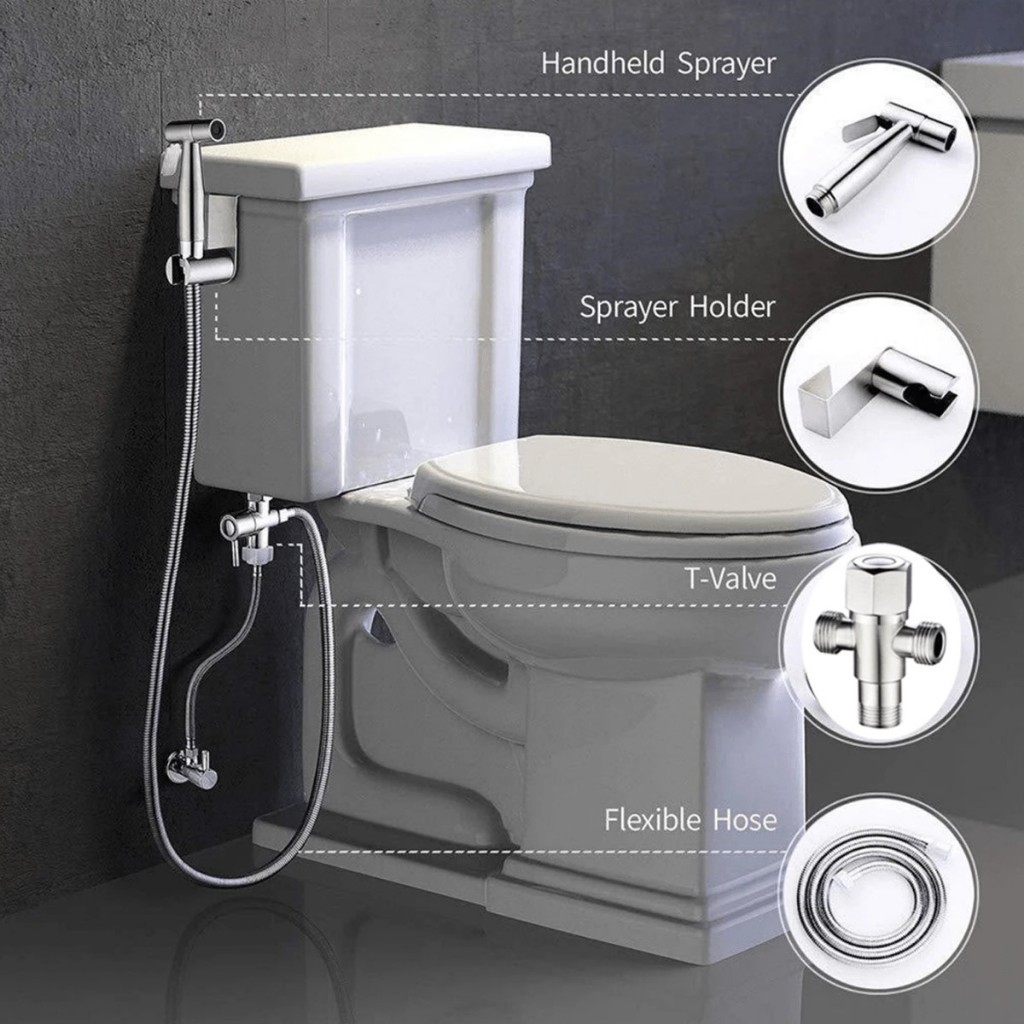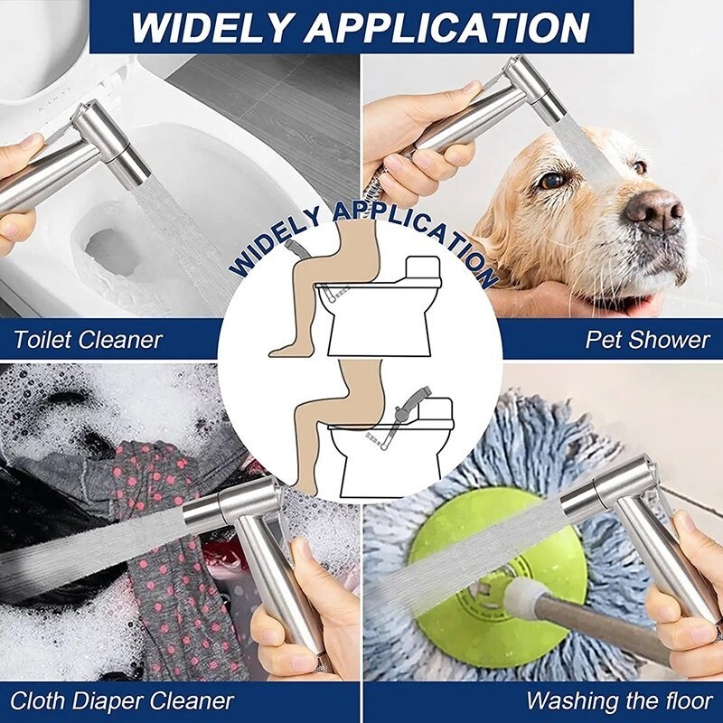 Ducha Higiênica Banheiro Inox 304 Quadrada Kit Completo Luxo Escovado - Anti-Corrosão Não Enferruja