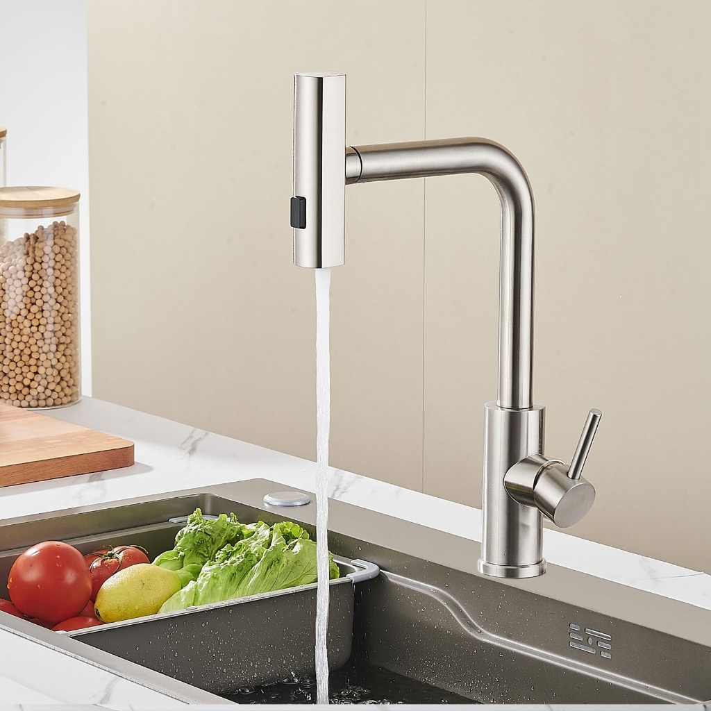YESOP Torneira Cascata Cozinha Bancada Gourmet Com Pulverizador Removível Cor Prata Escovada