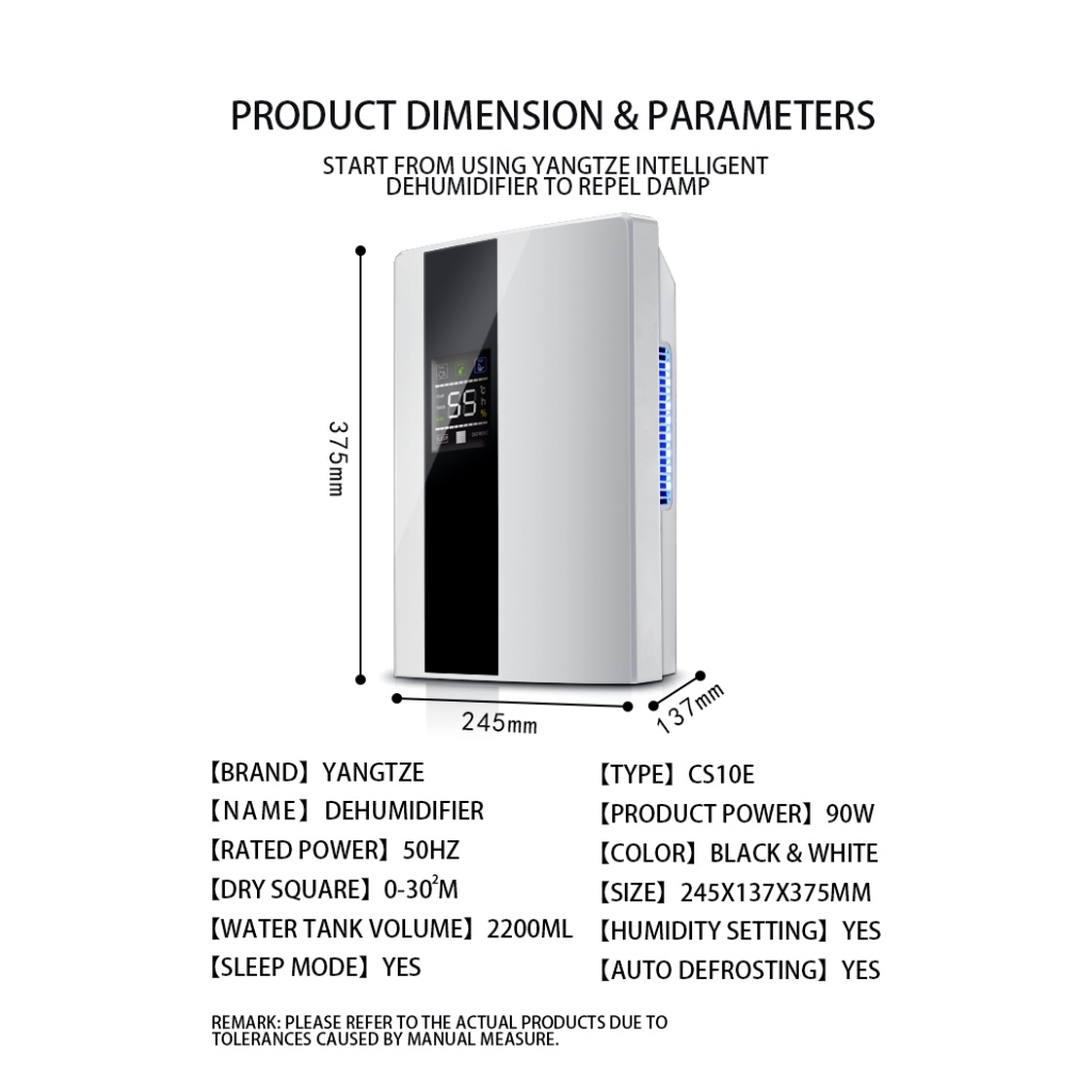 Desumidificador de ar elétrico antimofo 2000ml portátil 110/220v controle remoto Yesop