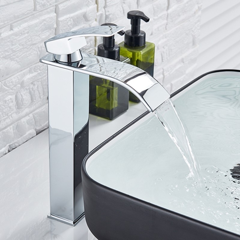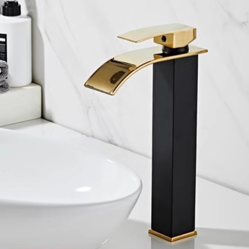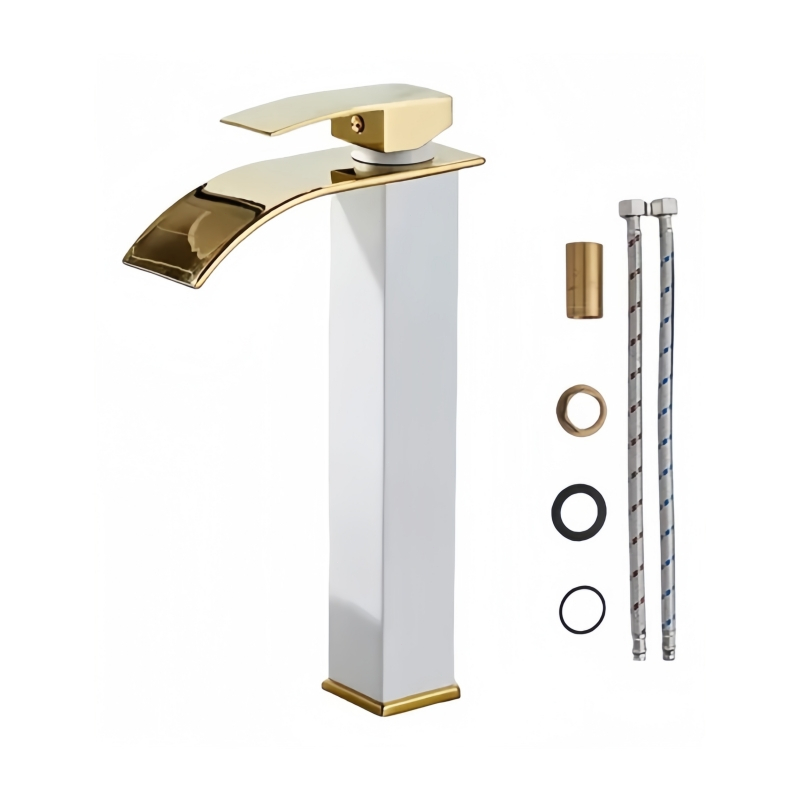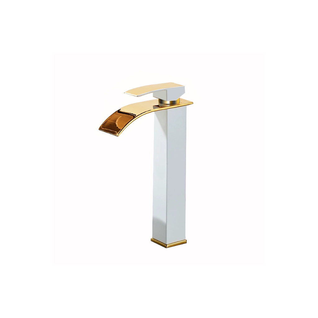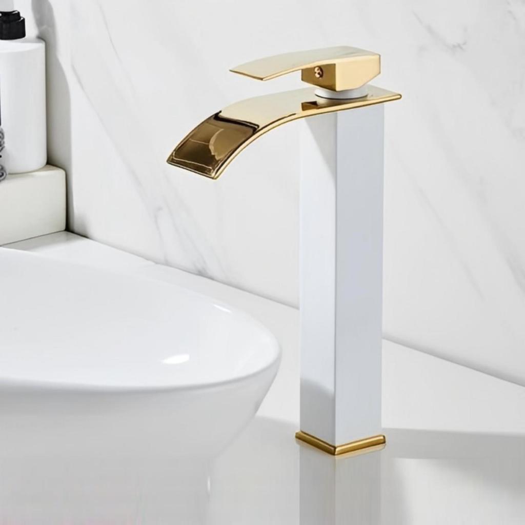 Torneira Monocomando Cascata Baixa para Banheiro Branco Dourado Yesop