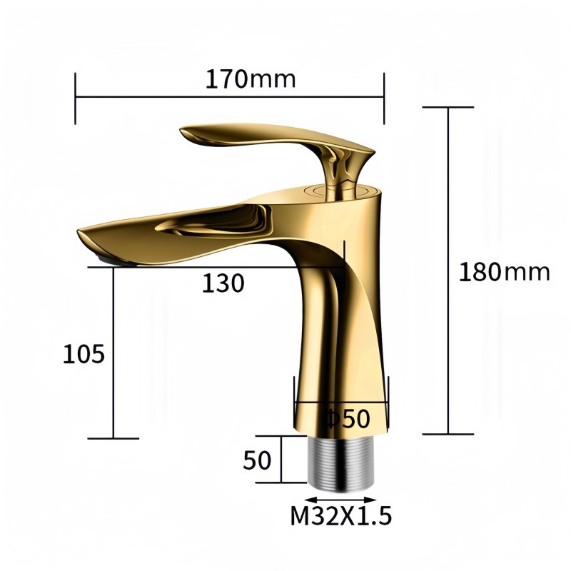 YESOP Torneira Banheiro Cascata Dourada Luxo Monocomando Aço Inox 304 Misturador Quente Frio 18cm