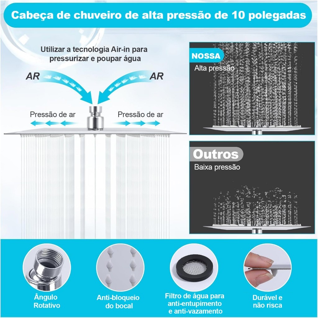 Ducha Chuveiro 25x25cm Inox Com Braço Com Chuveiro De Mão Prata Cromado Yesop