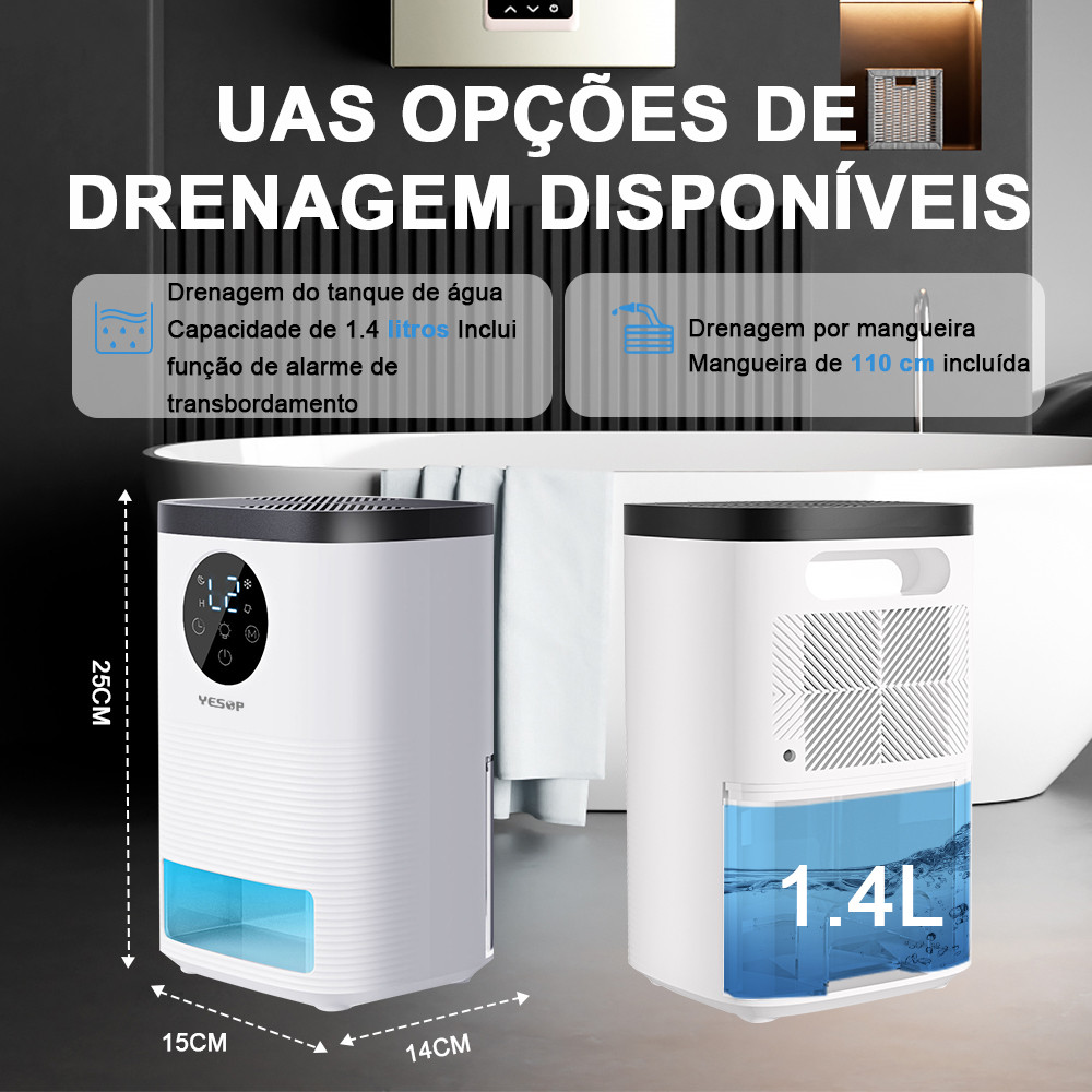 Desumidificador De Ar Ambiente Eletrico Antimofo 2000ml Portátil E Bivolt 110/220v Operação Controle Remota Yesop