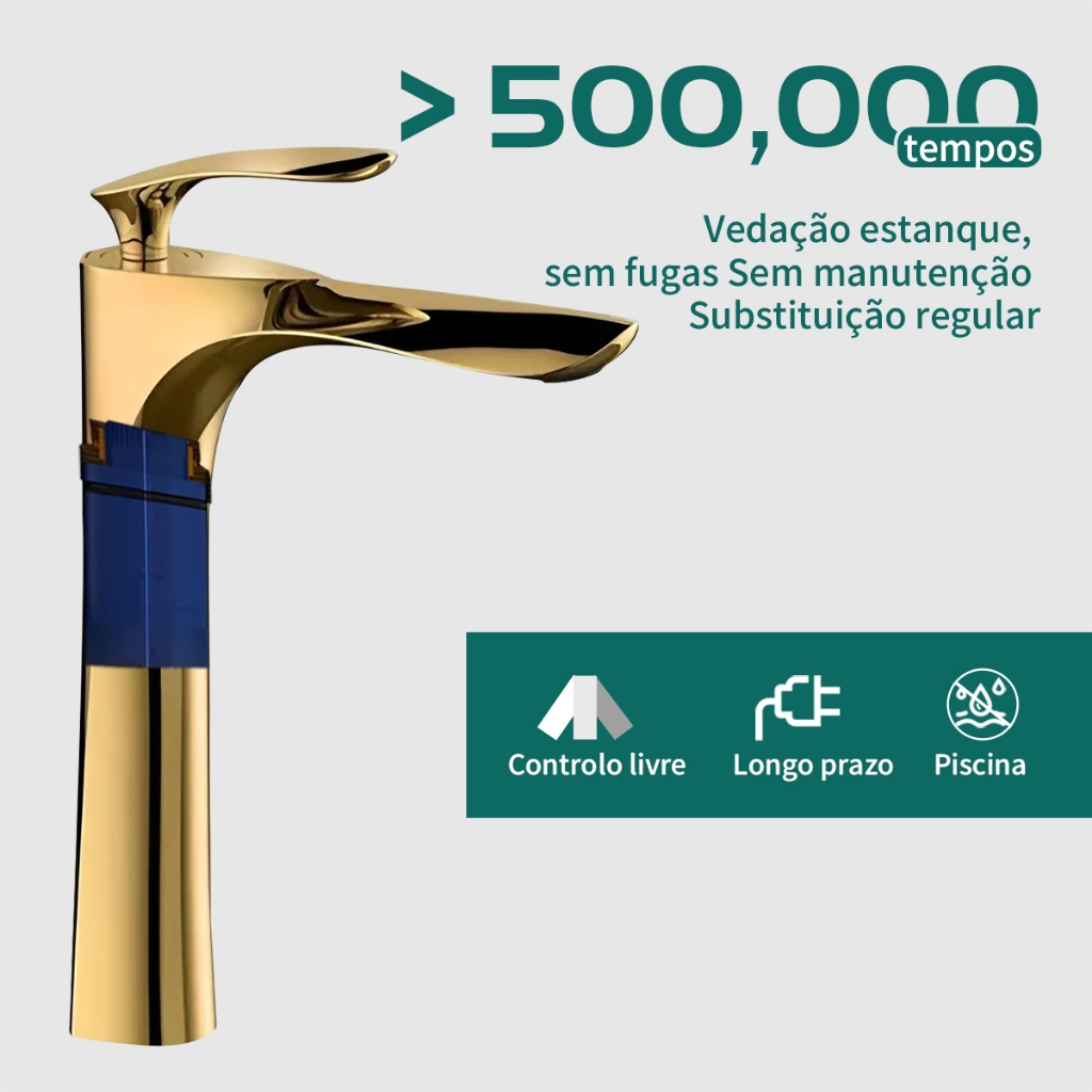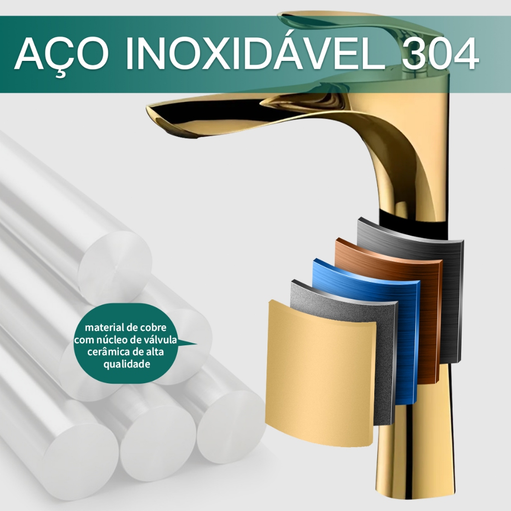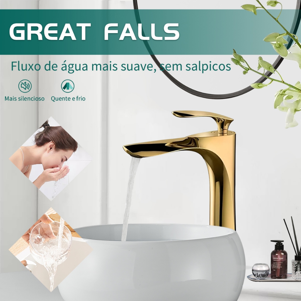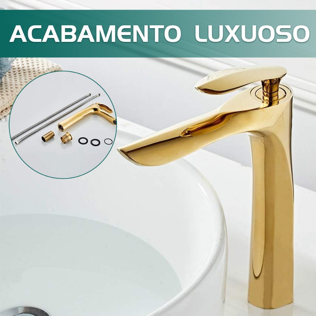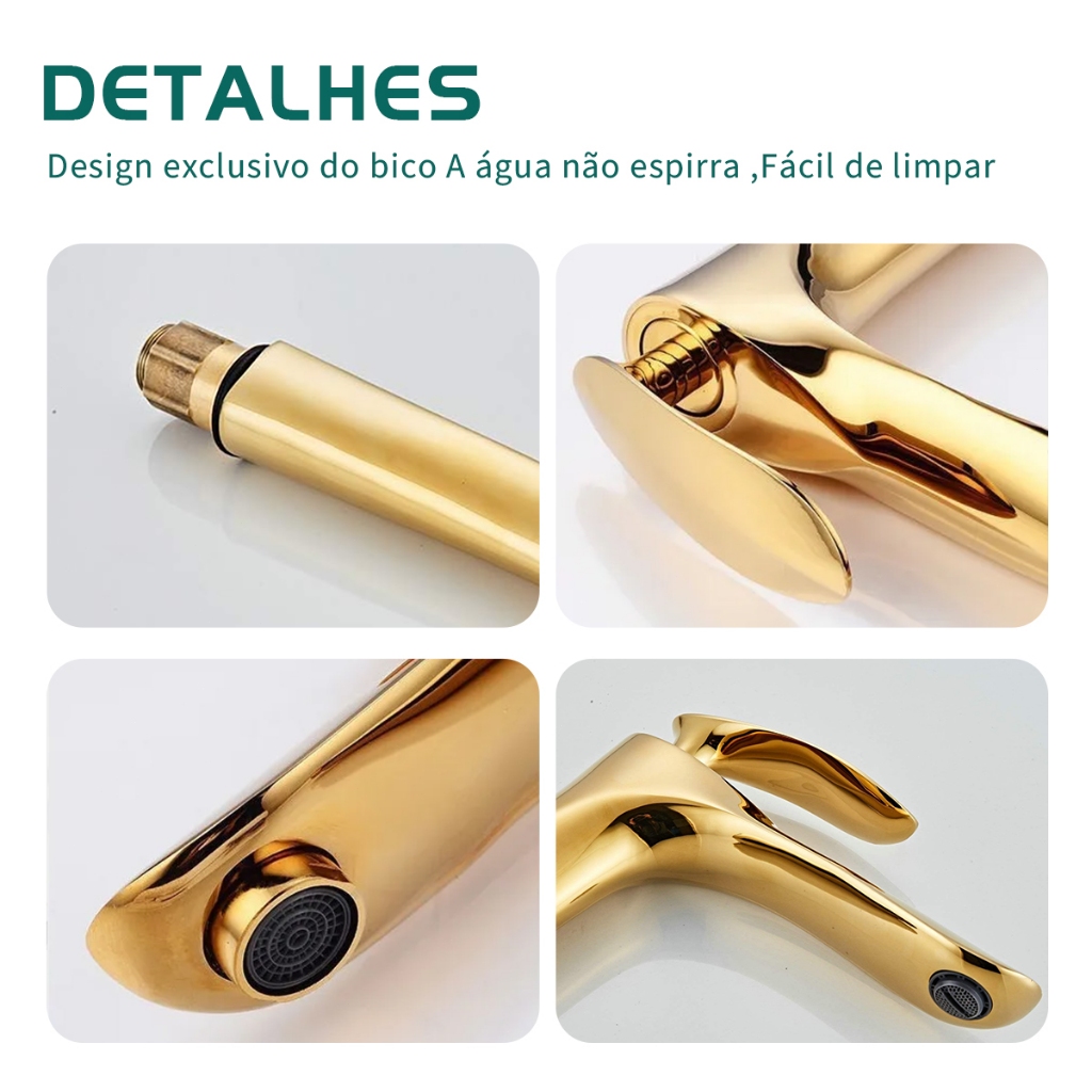 YESOP Torneira Para Banheiro Monocomando Cascata Dourada Ouro Luxo Inox 304 Misturador Quente Frio