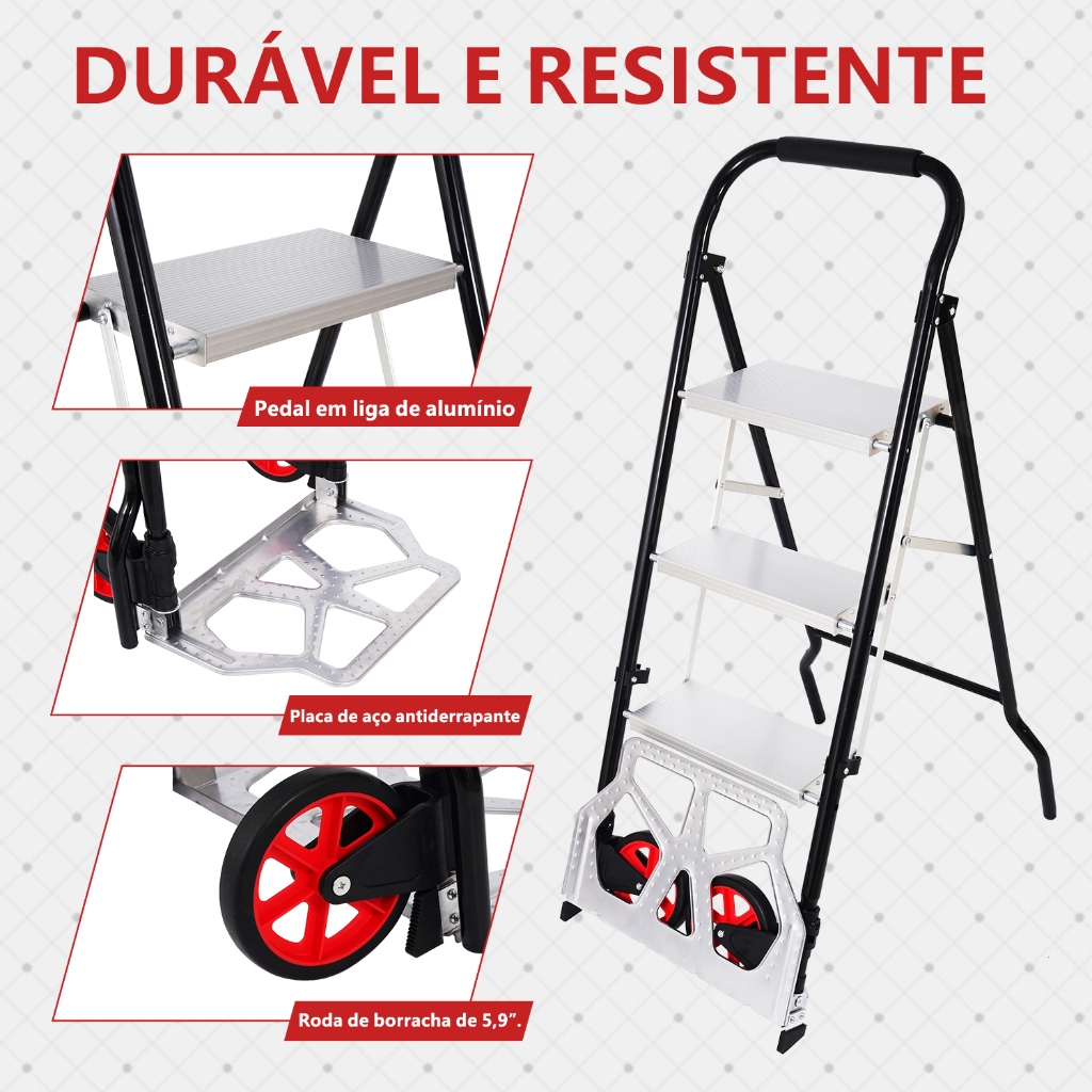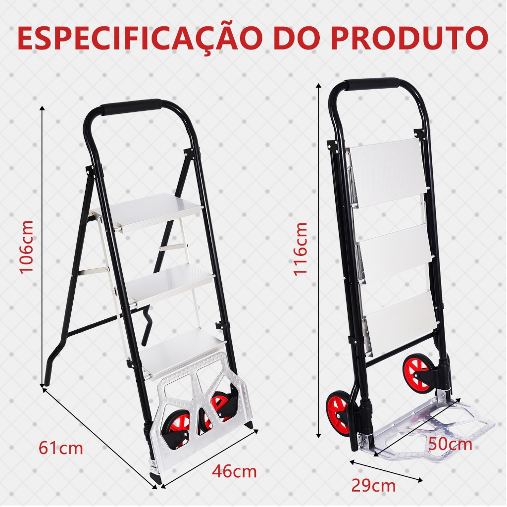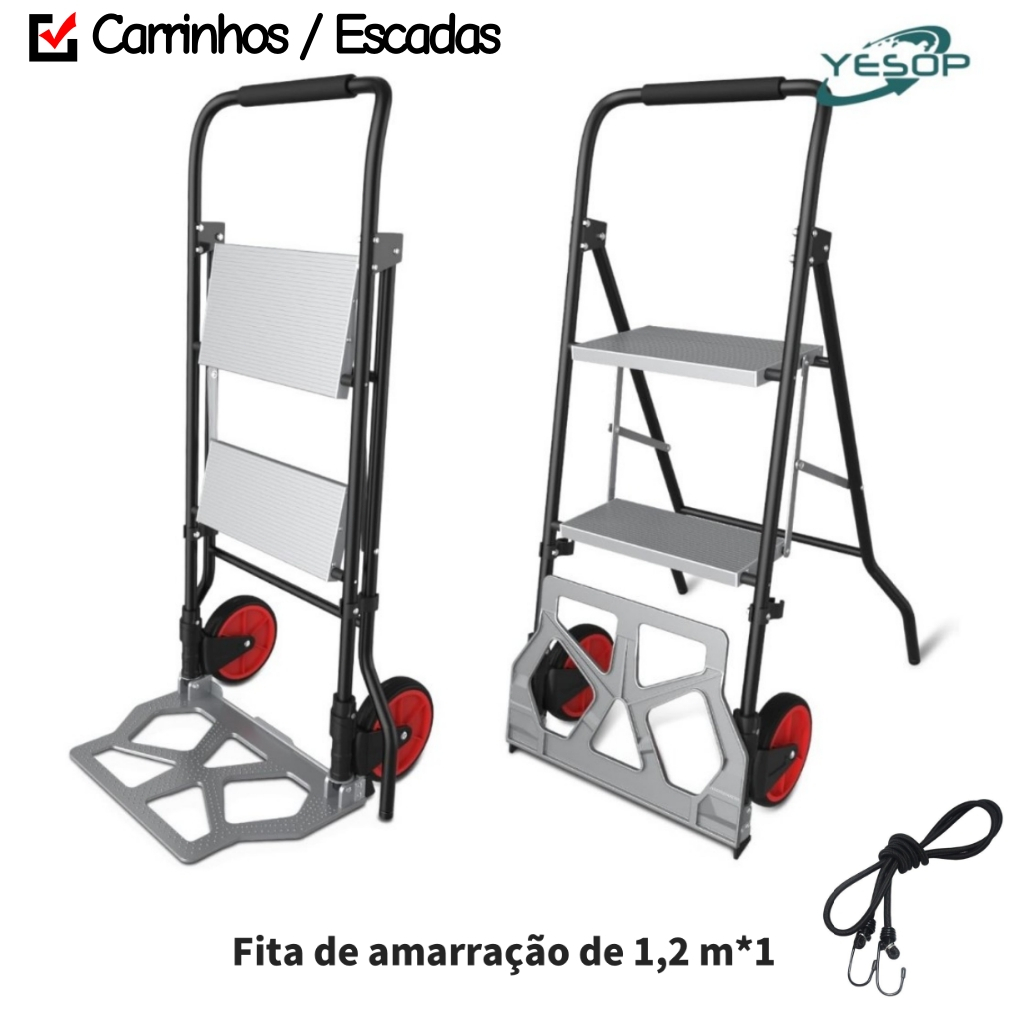 【Itens mais vendidos】Carrinho de Carga Escada De Alumínio Carrinho Multifuncional/Escada Dobrável 250Kg Com Rodas Yesop