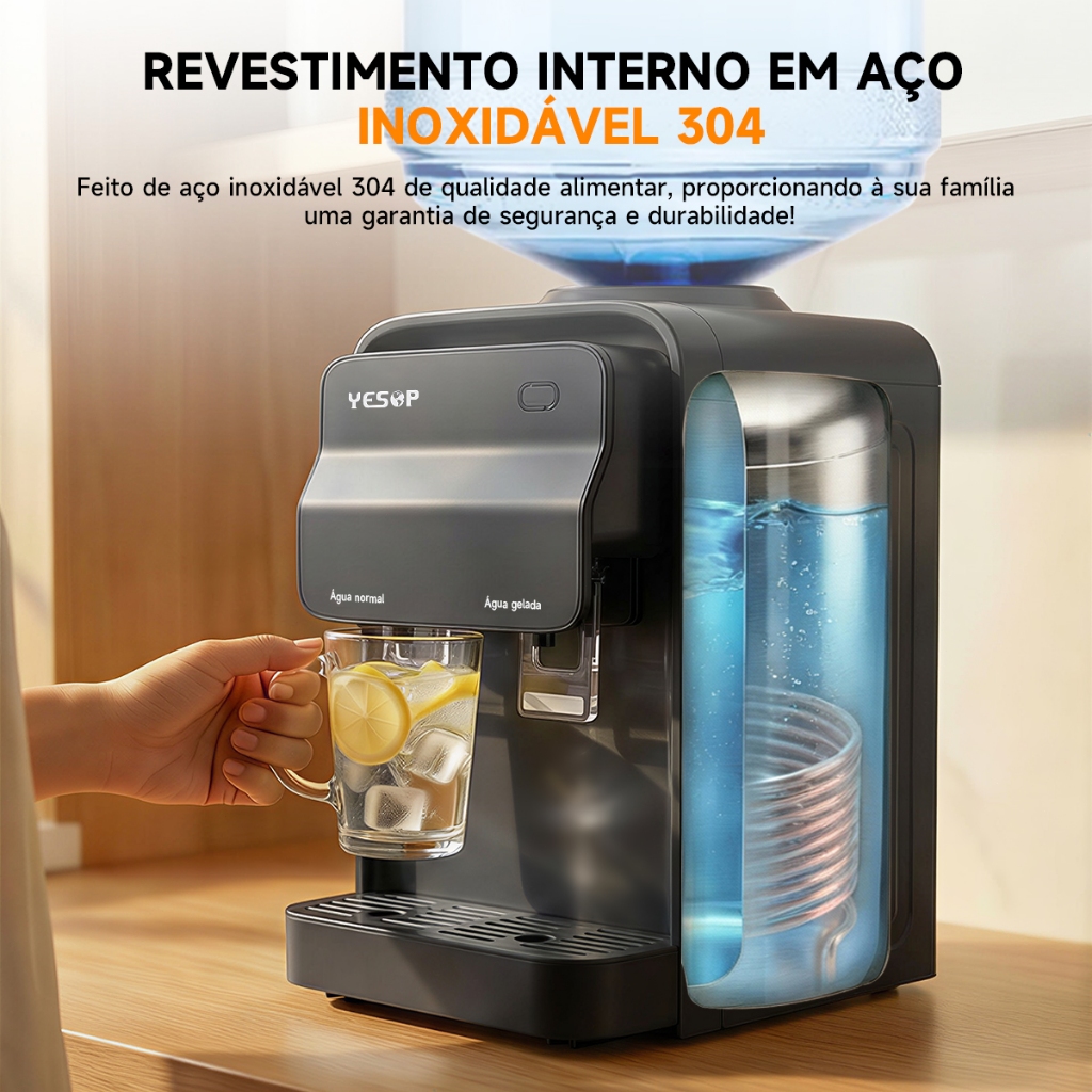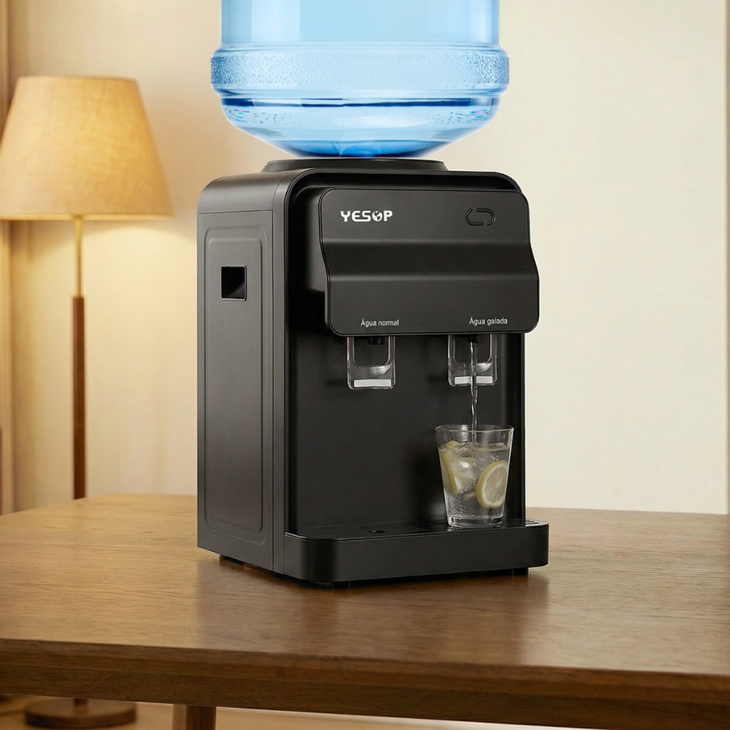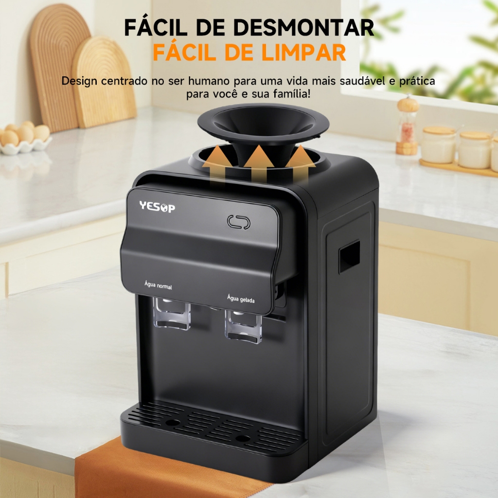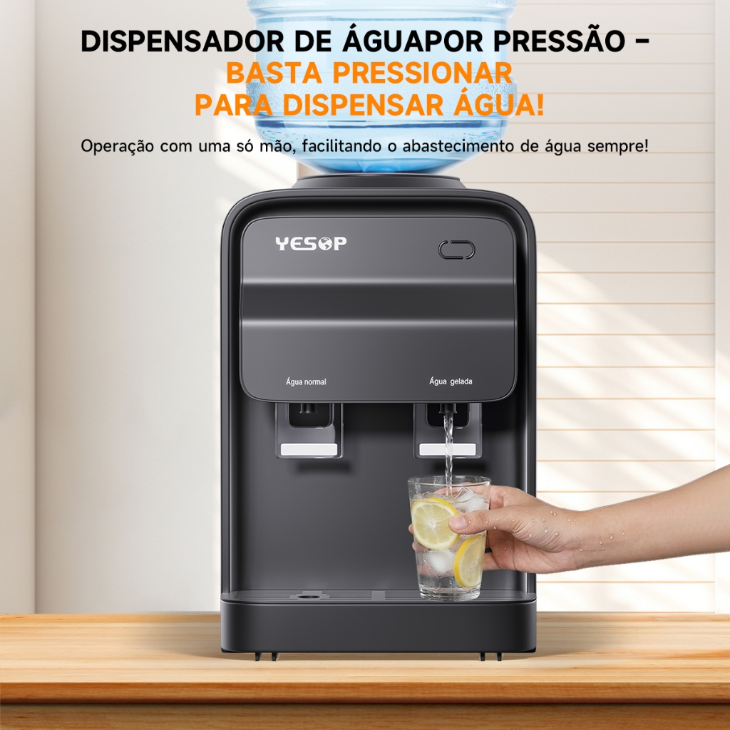 YESOP Bebedouro De Mesa Água Gelada E Natural Bivolt 127V/220V Galão 10-20 Litros Preto Elegante