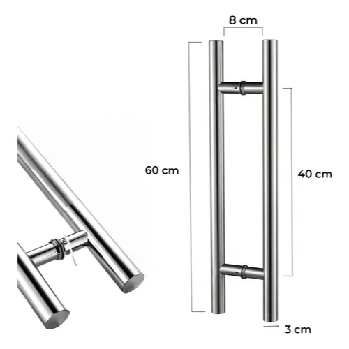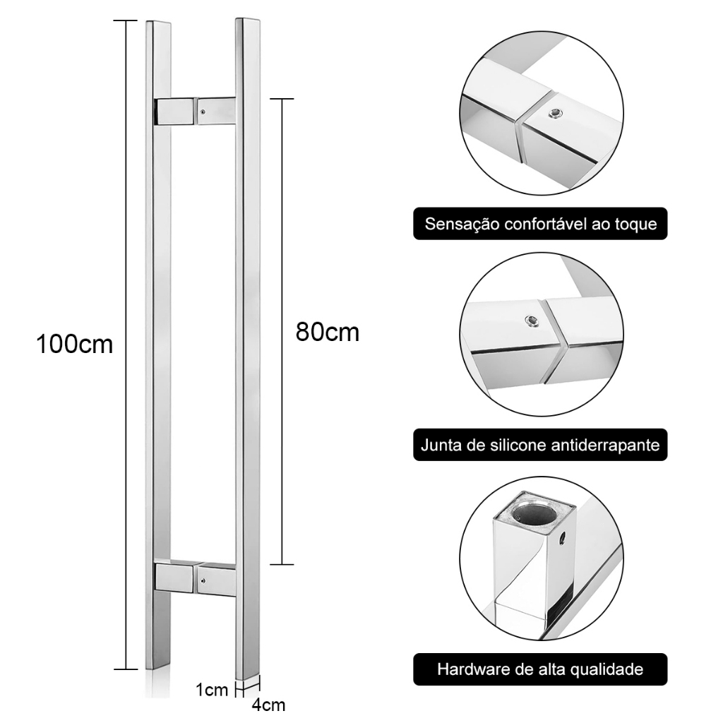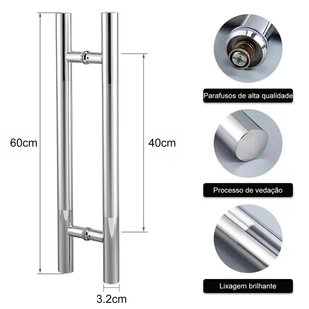 Puxador Porta Pivotante 60cm/100cm Aço Inox 304 Preto Fosco Luxo Redondo Duplo Madeira Vidro Portão Premium Yesop