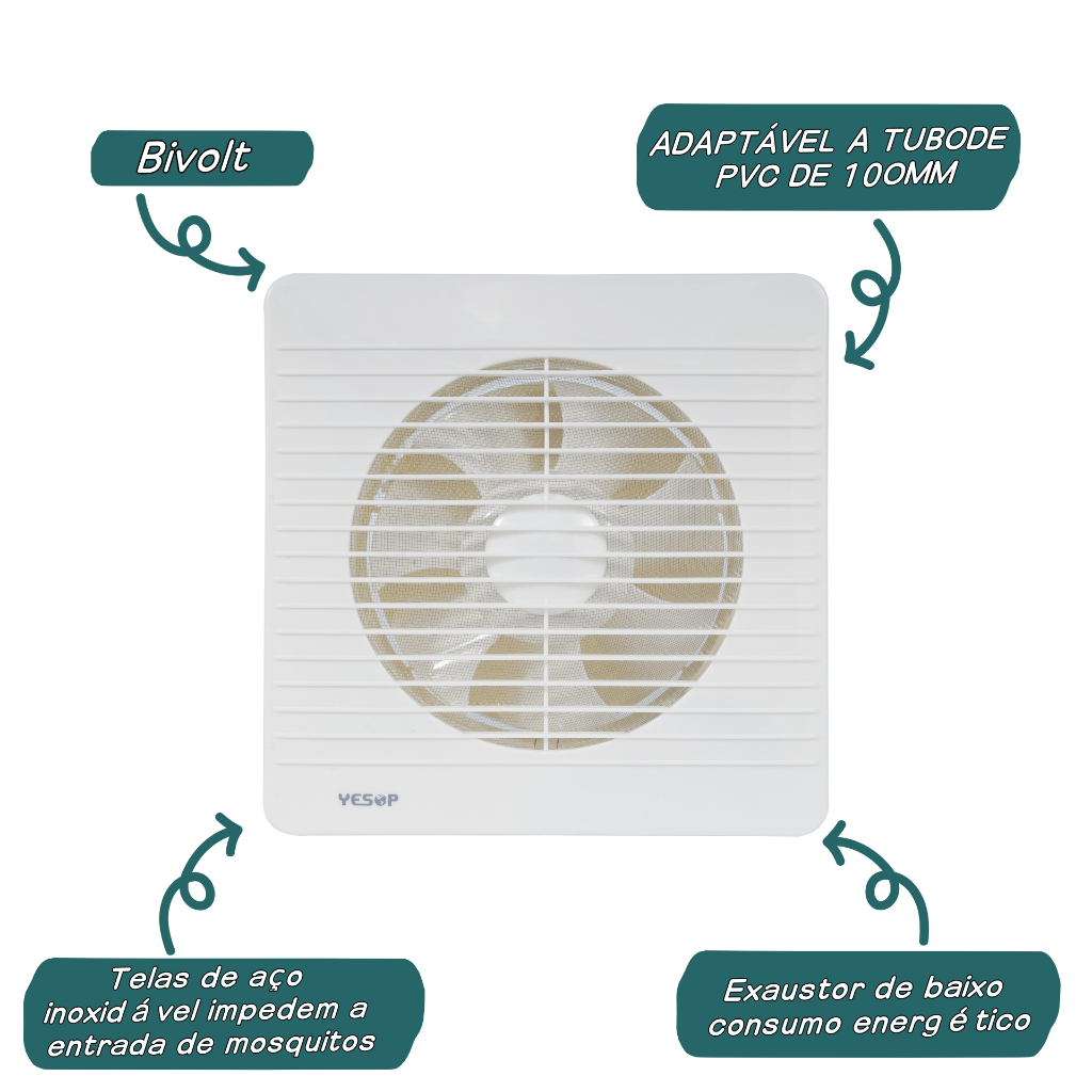 Exaustor Banheiro Bivolt 10/15/18cm Silencioso Anti Odor Ventilador Cozinha Quarto Parede Yesop