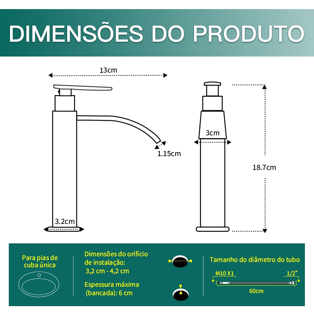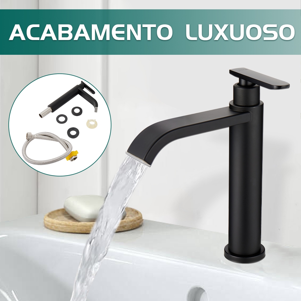Torneira Banheiro Bica Alta ¼ de Volta Luxo Torneira Monocomando Bica Alta Banheiro 19cm Yesop