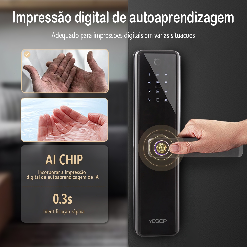 YESOP Fechadura Digital Inteligente 3D Face ID WiFi Câmera Vídeo Porteiro Tuya À Prova Dagua Luxo
