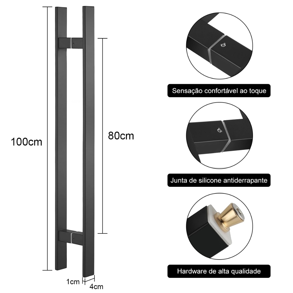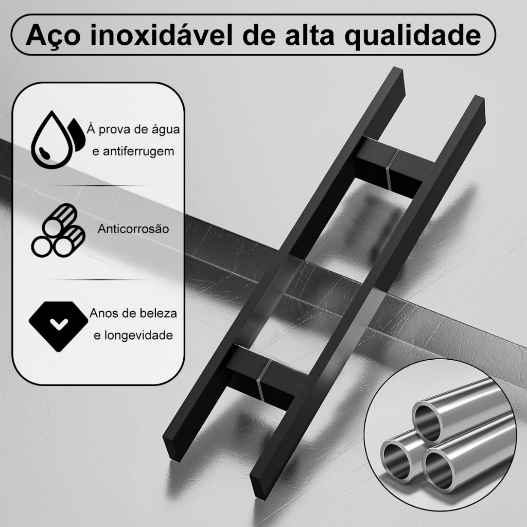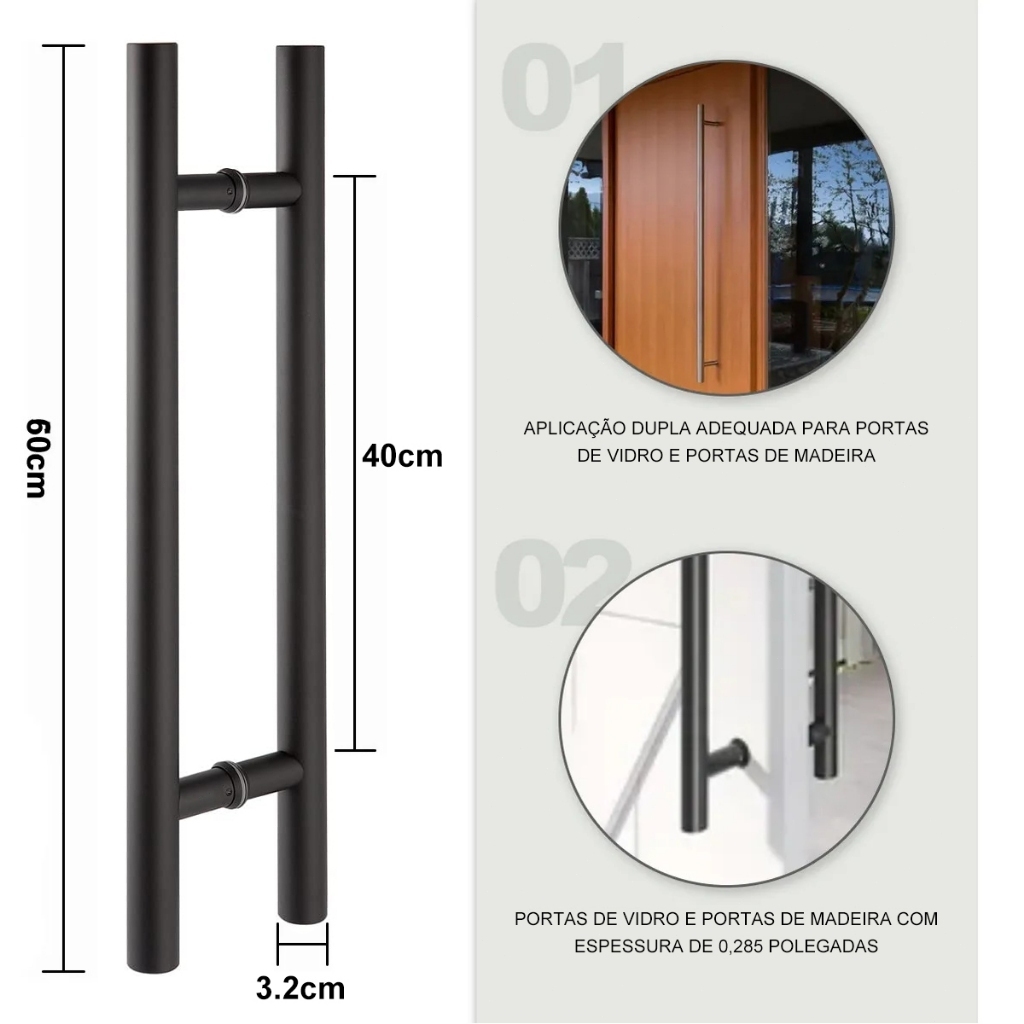 Puxador Duplo Metal Inoxidável Robusto Luxo Para Portas De Madeira Vidro e Metal 60cm 100cm