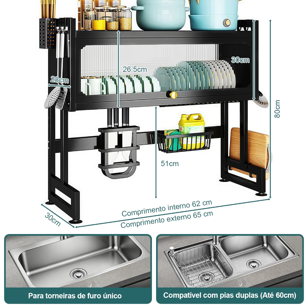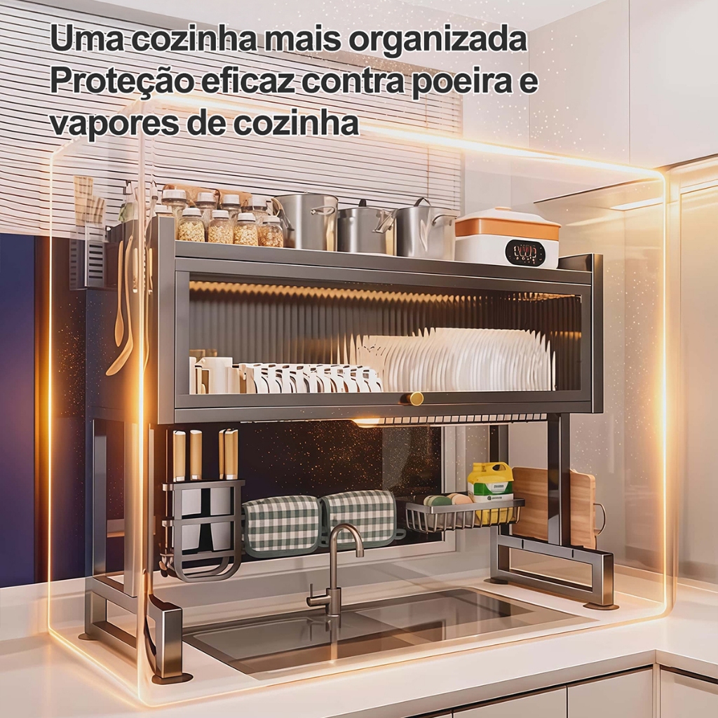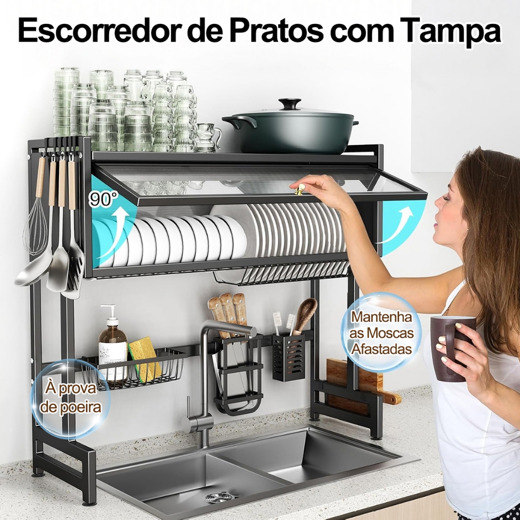 YESOP Escorredor De Louça Sobre Pia Com Armário E Tampa Anti-poeira Organizador Cozinha 65cm Premium
