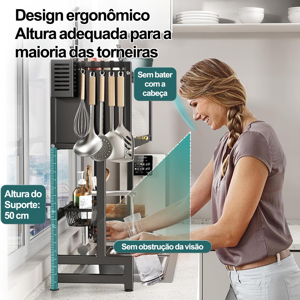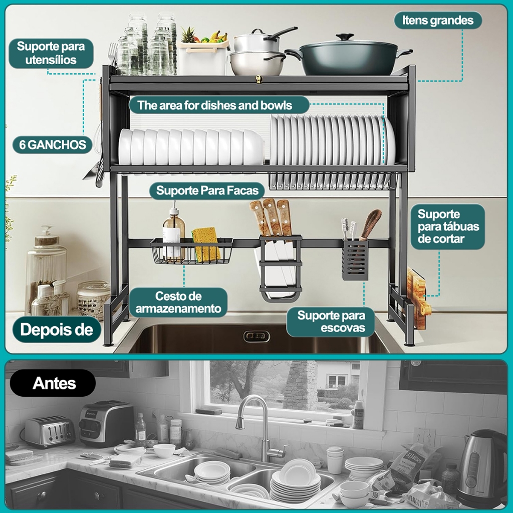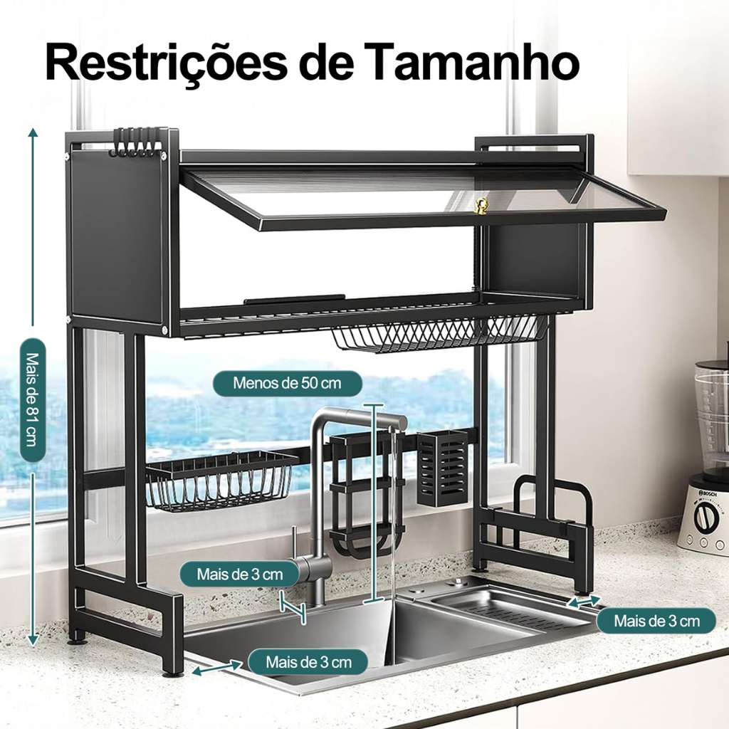 YESOP Escorredor De Louça Sobre Pia Com Armário E Tampa Anti-poeira Organizador Cozinha 65cm Premium
