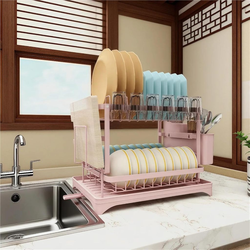 YESOP Escorredor De Louças 2 Andares Aço Carbono Antiferrugem Drenagem Automática 360 Graus 42cm