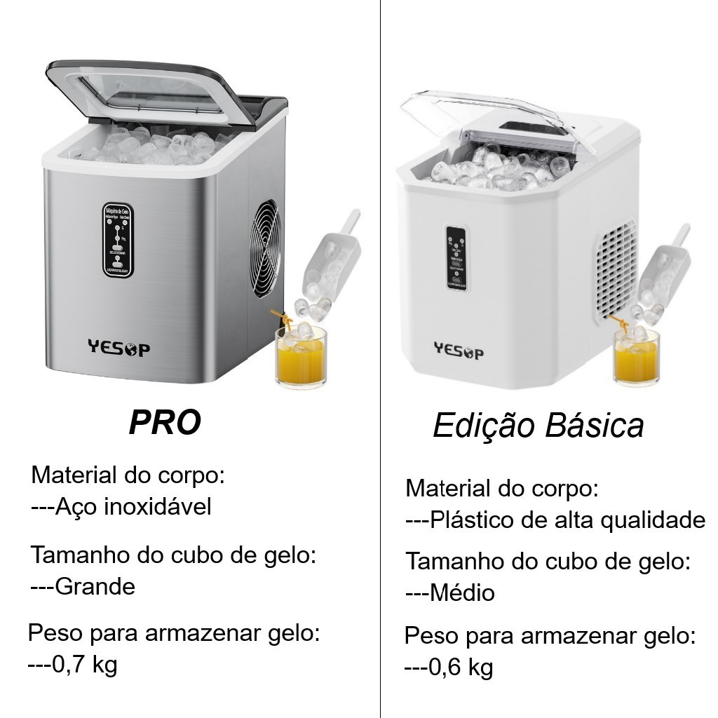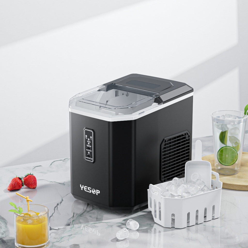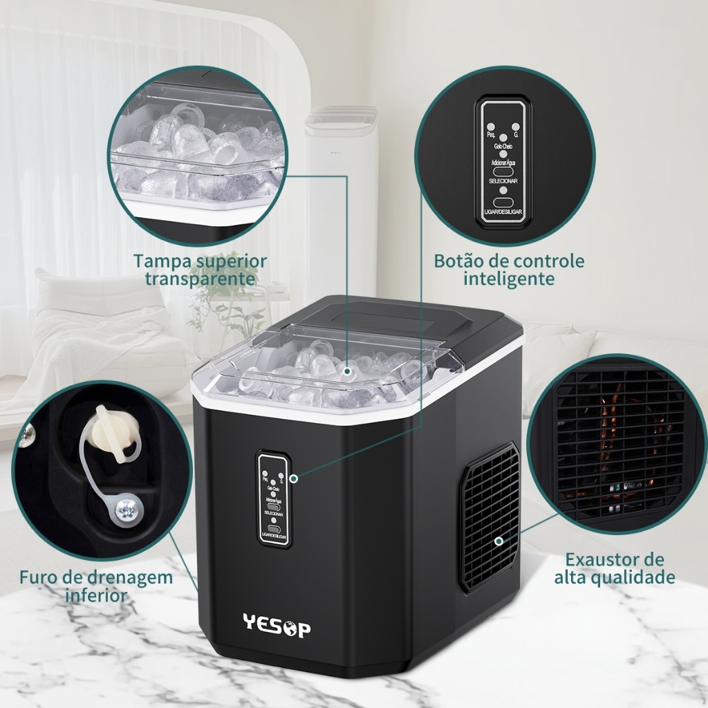 YESOP Máquina De Gelo 12kg/Dia 127V Automática Turbo Ice Portátil Preto para Casa Bar e Escritório