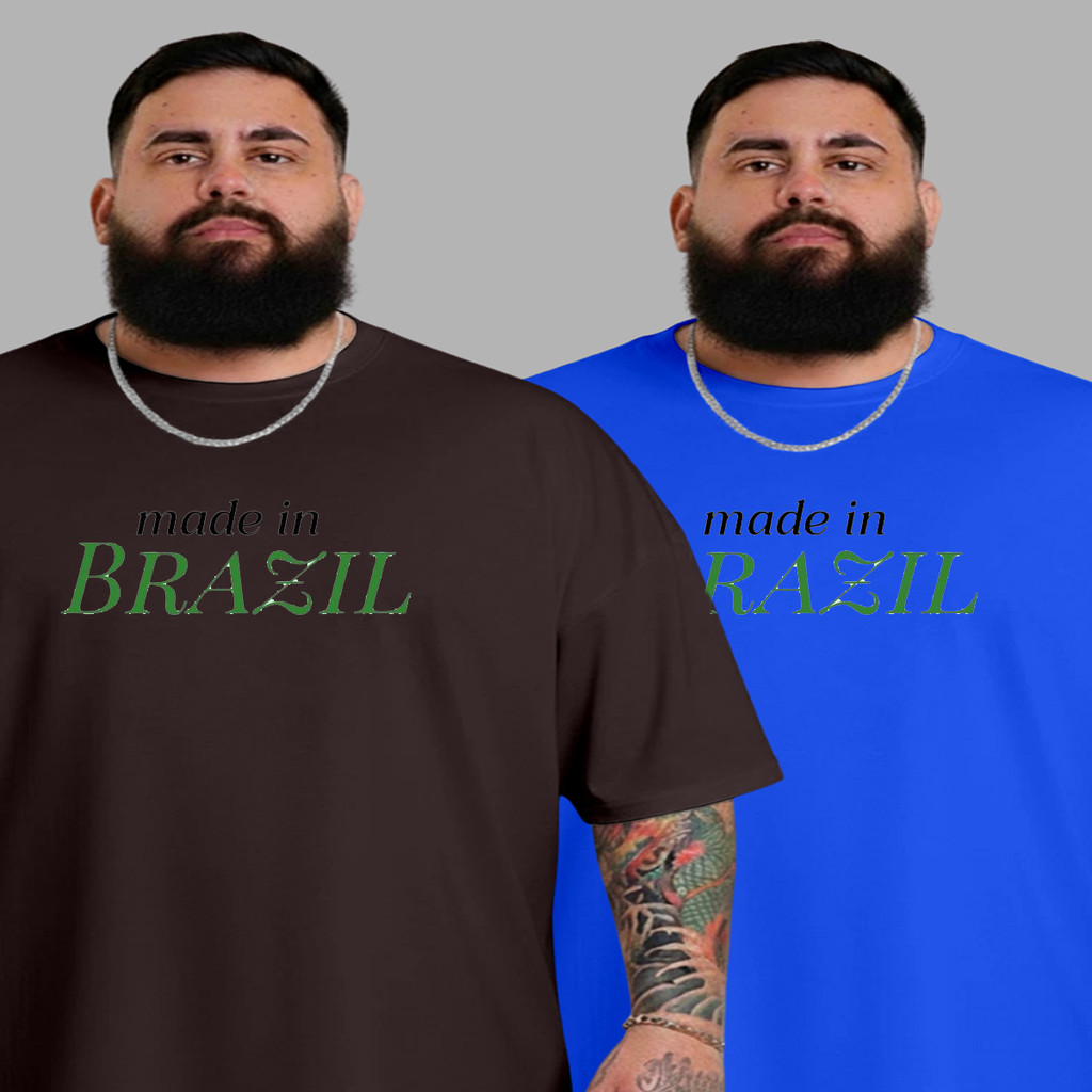Kit 2 Camiseta Plus Size Masculina P ao G5 Camisa Brasil Basica Algodão Envio Imediato