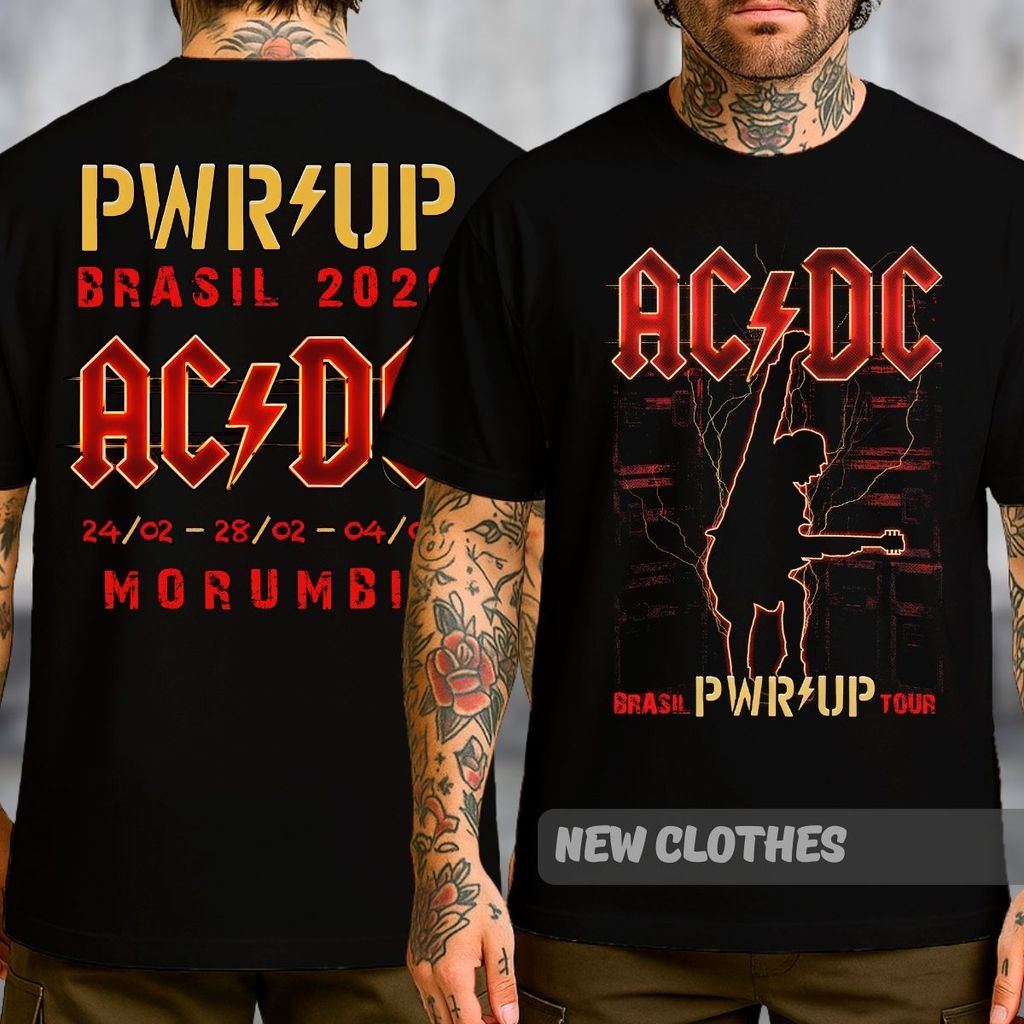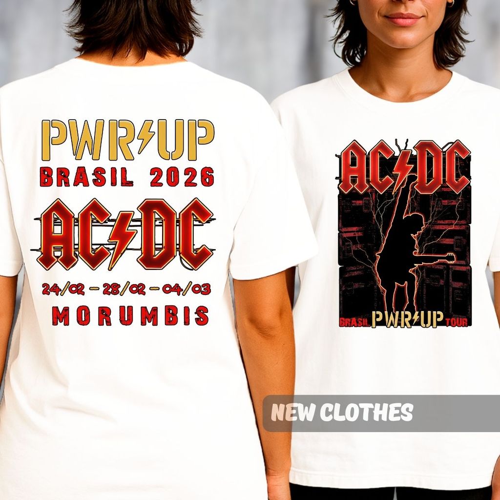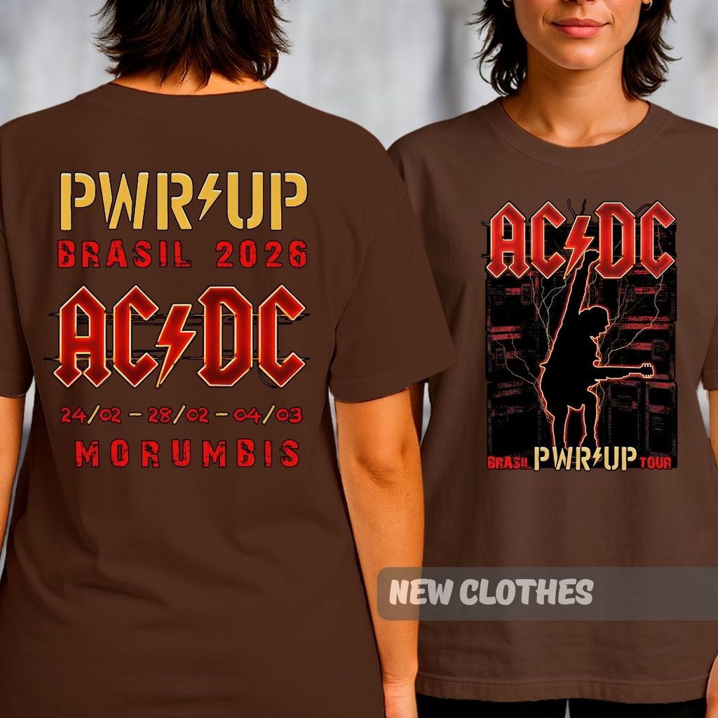 Camiseta Unissex Banda Ac Dc Rock Clássico Power Up Tour Brasil 2026