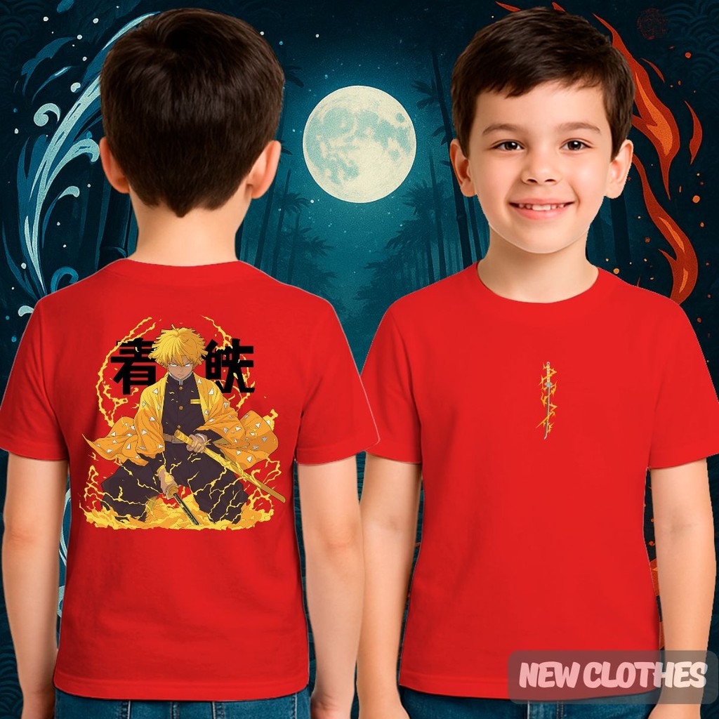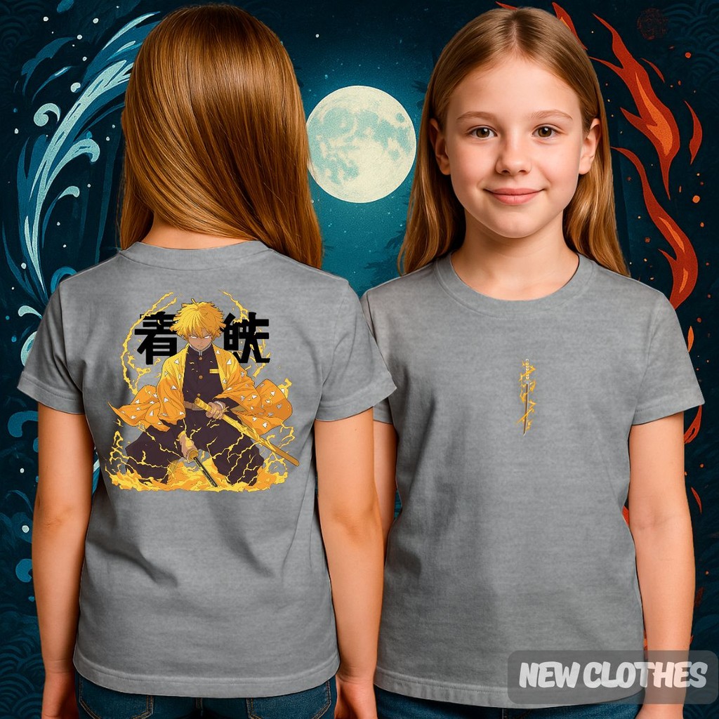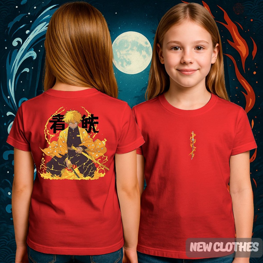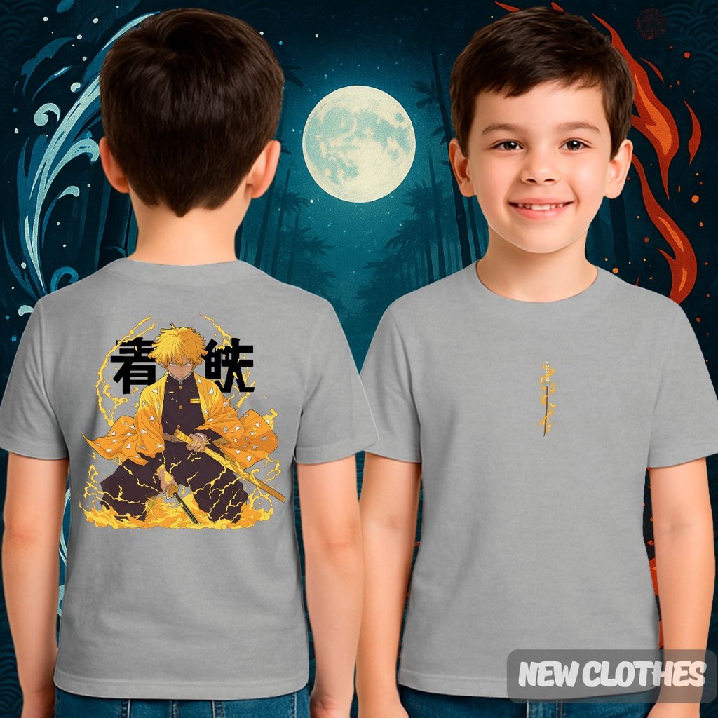Camiseta Demon Slayer Infantil Zenitsu Agatsuma Anime Kimetsu no Yaiba Respiração Do Trovão Otaku