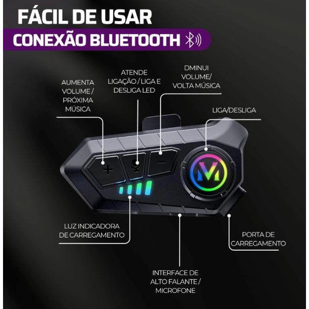 Fone De Ouvido Para Capacete Bluetooth Y10 - IPX6 A Prova D´ÁGUA Musica / Chamadas/ GPS Sem Fio
