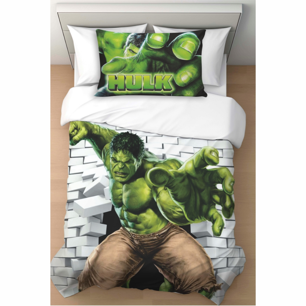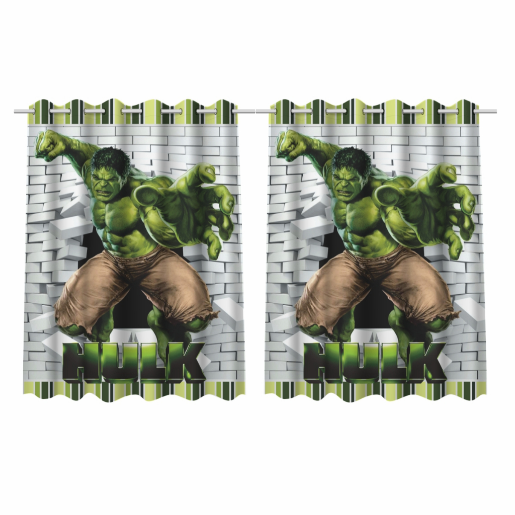 Jogo de Lençol Solteiro Hulk e Cortina Decoração para Quarto Infantil