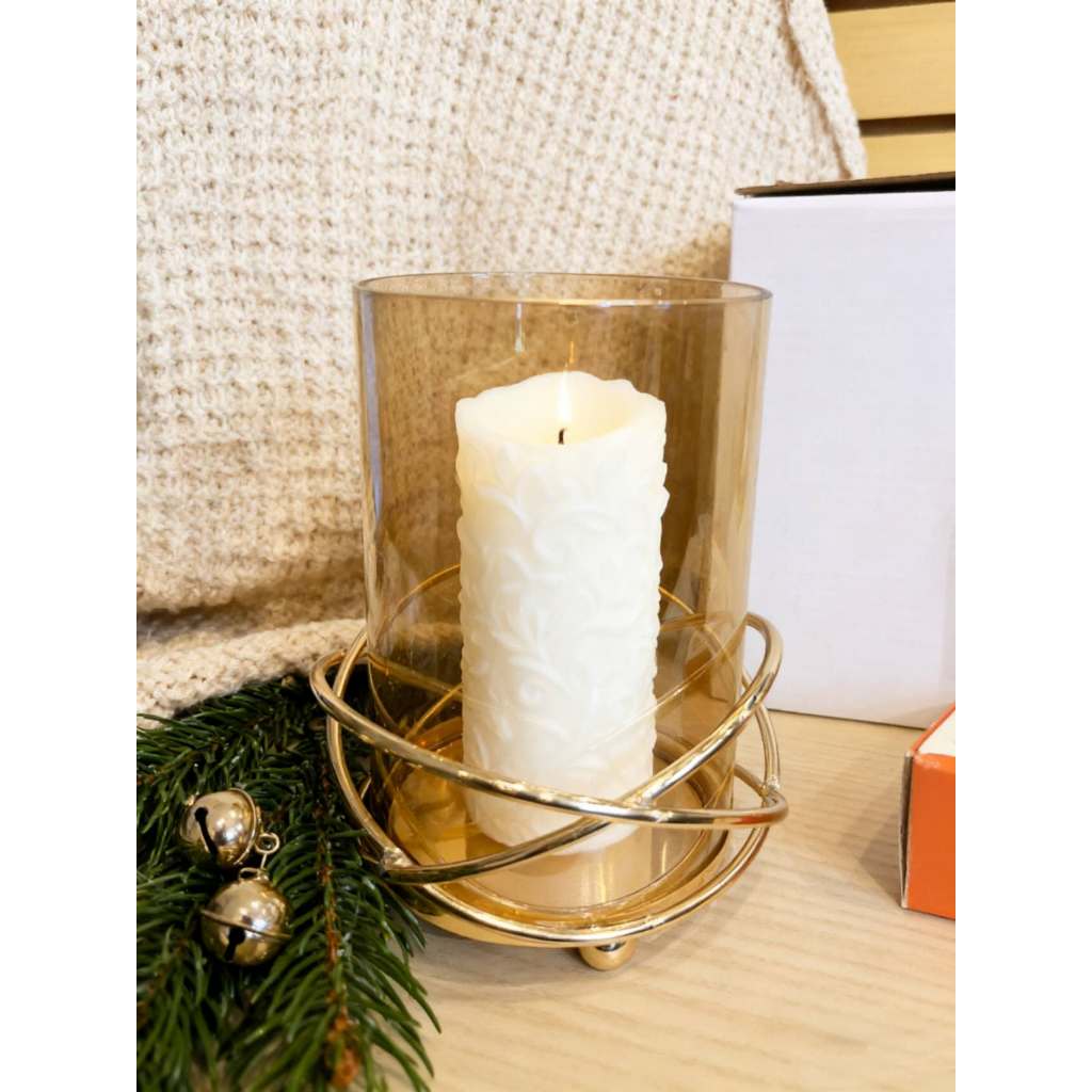 Porta Velas Castiçal e Suporte de Vidro para Vela de 7 Dias Dourado Antichamas para Oratório
