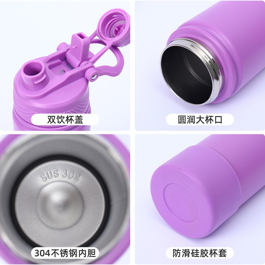 Garrafa Termica Tampa Dupla Inox Esportiva com Base de Silicone Resistente 400 600 800ML