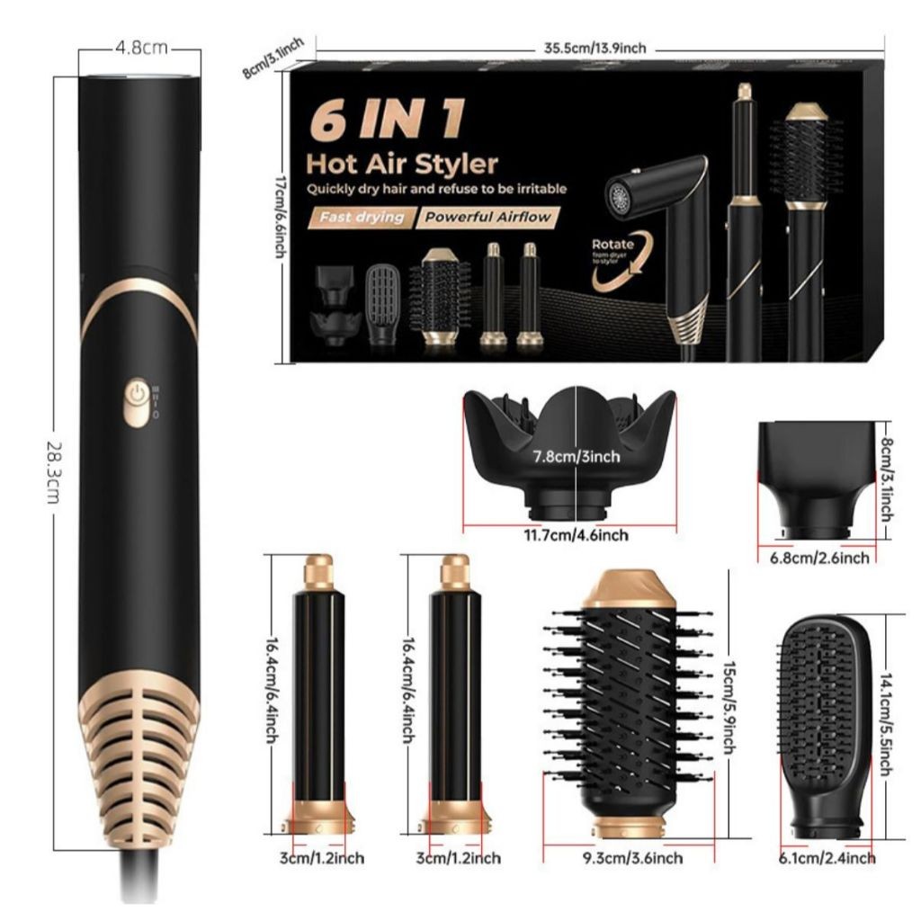 Escova Secadora 6 em 1 Dobrável Automática Cabelos Liso e Cacheado | Seca, Modela e Alisa Rápido