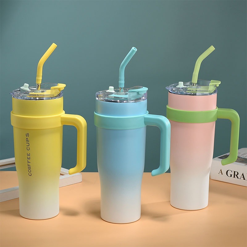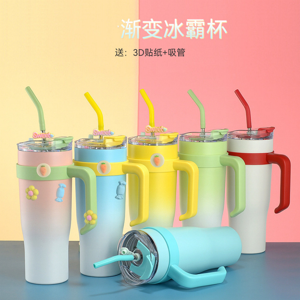 Copo Térmico Garrafa Com Tampa e Canudo e Adesivos 1200ML Frio ideal para Hidratação Viagem