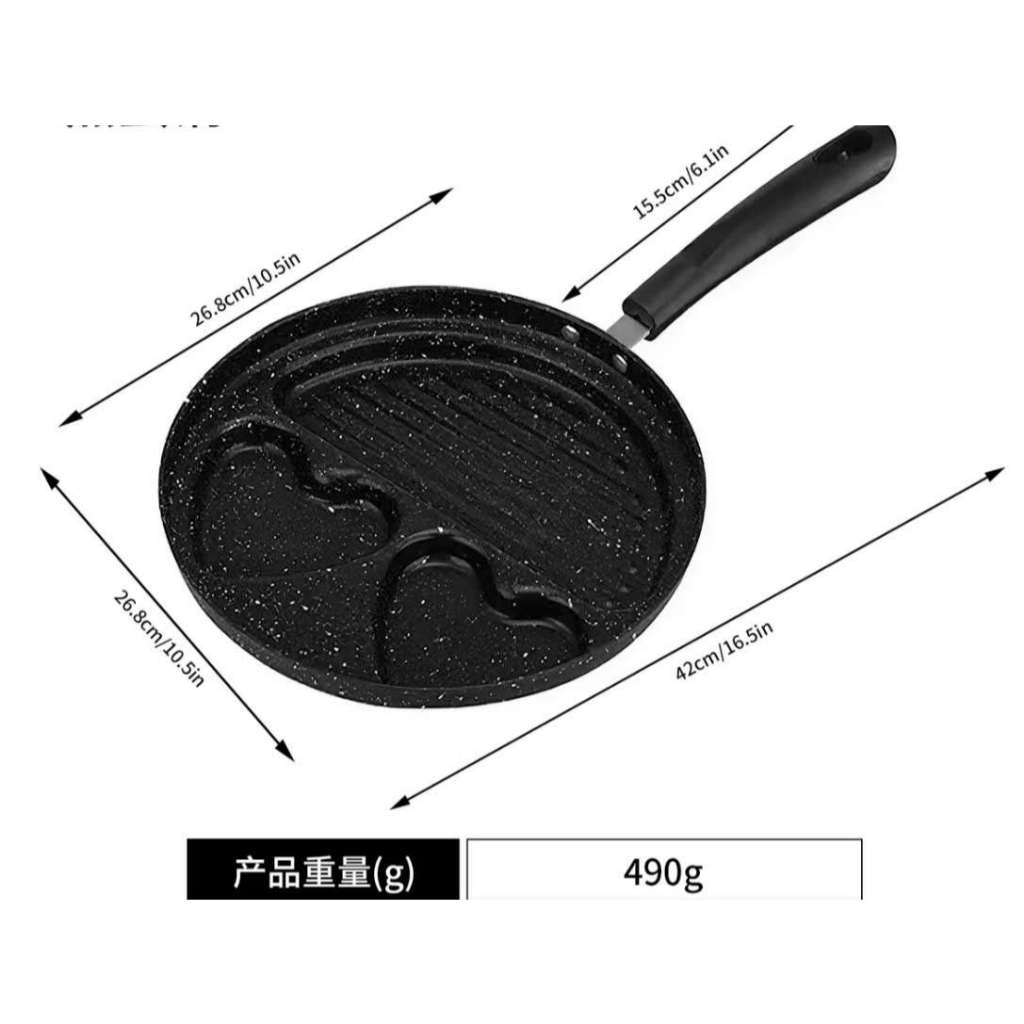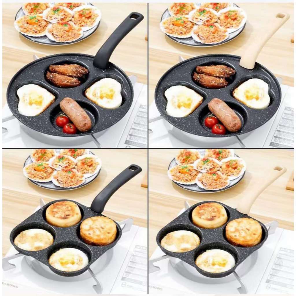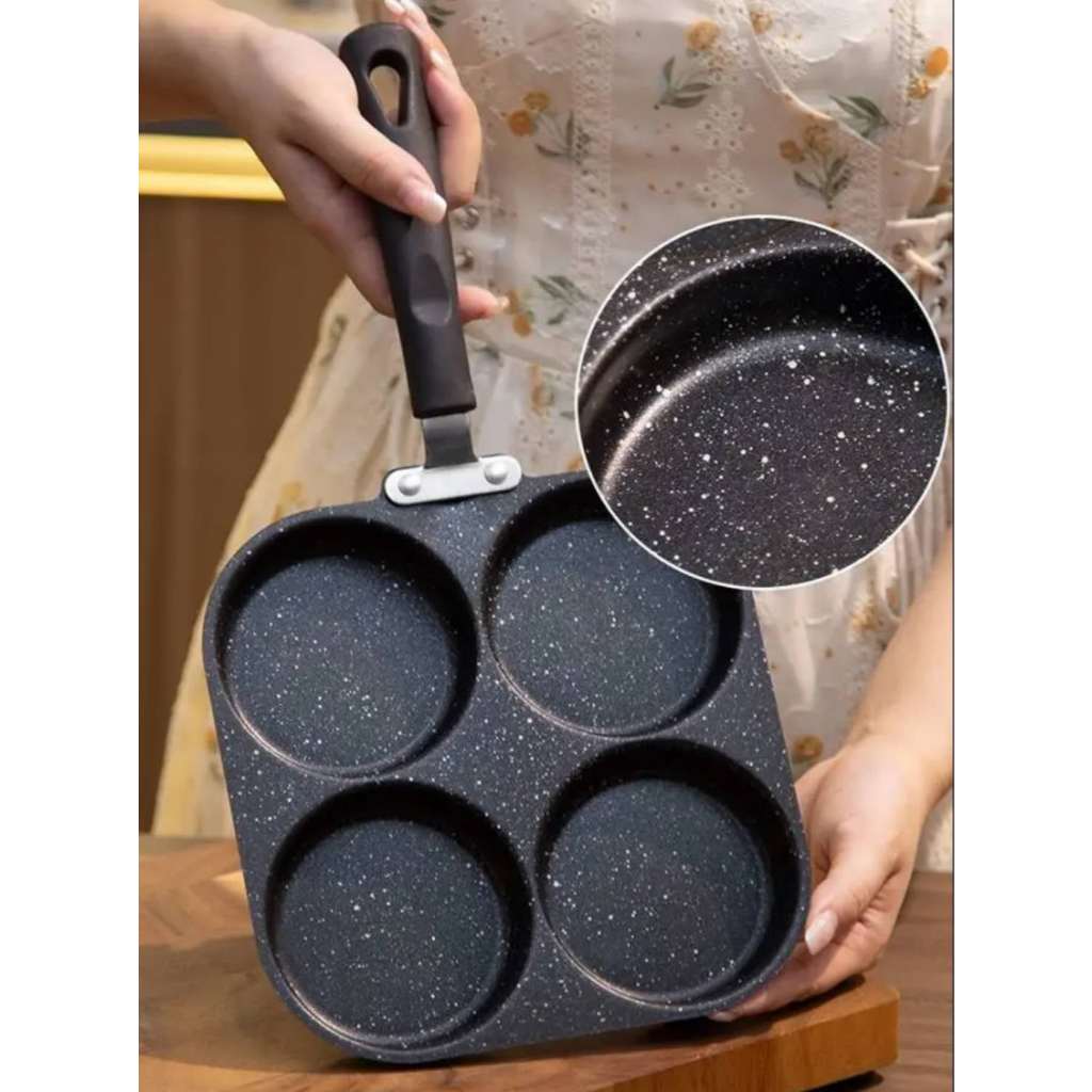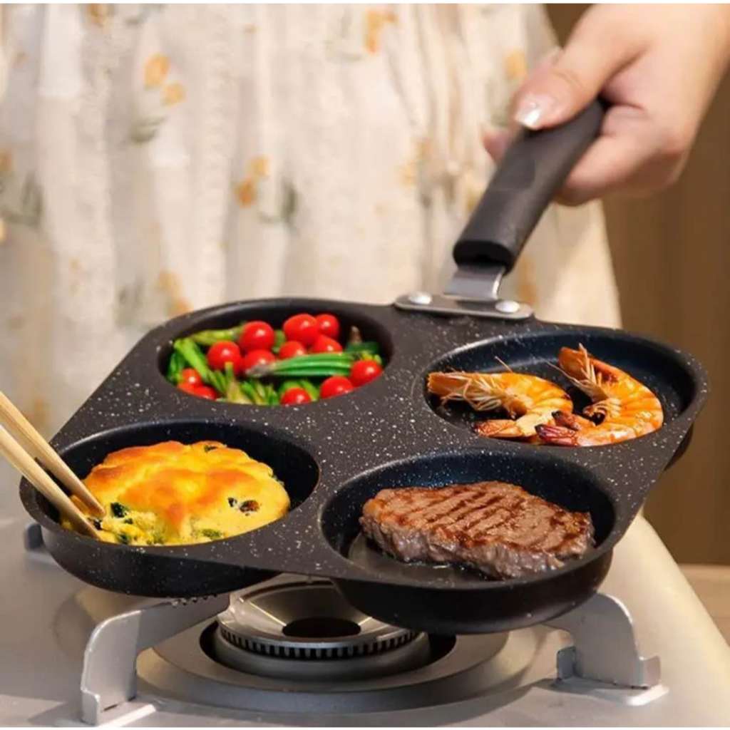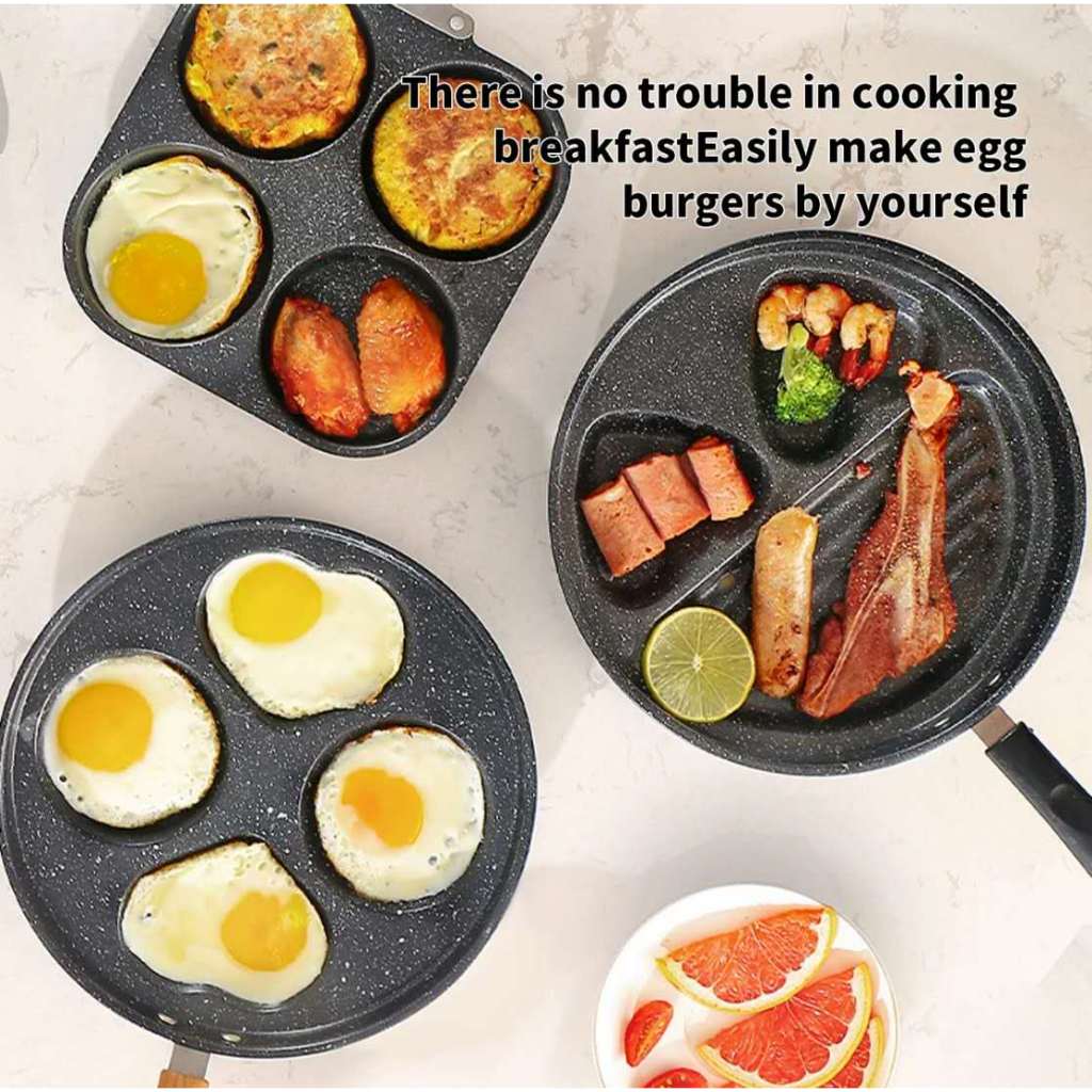 Frigideira Antiaderente 3/4 Furos Divisórias Fritar Ovo Carne Lanche Hambúrguer Multiuso