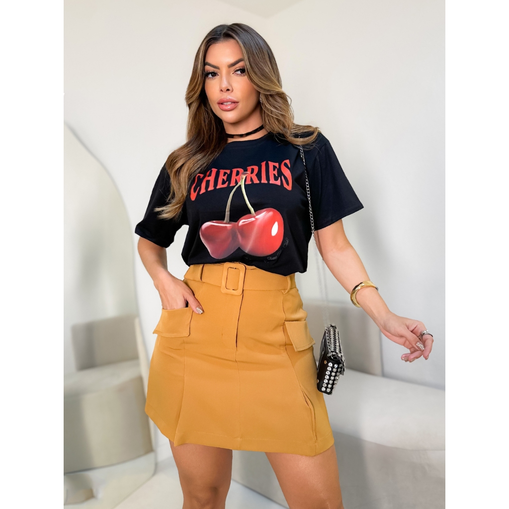 Saia Feminino Curta Com Bolso Lateral Tecido Alfaiataria 00503