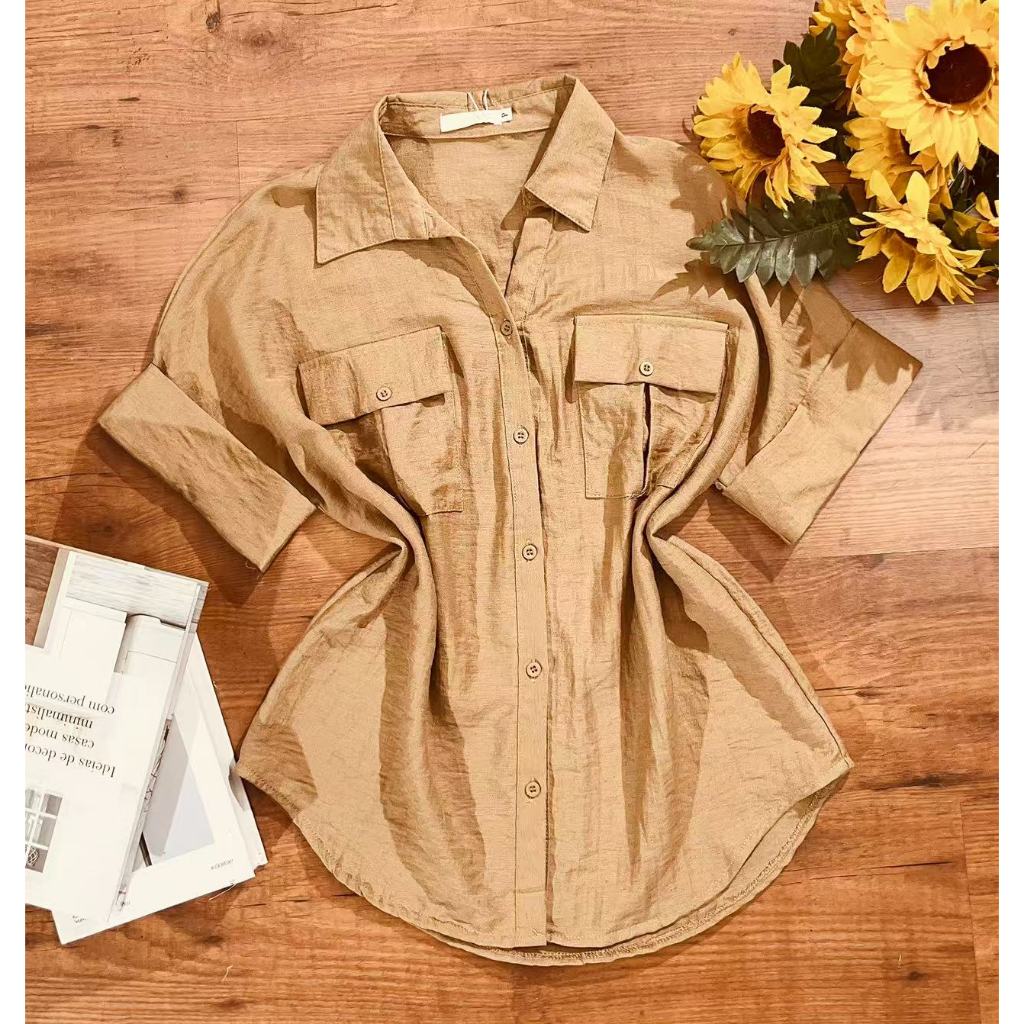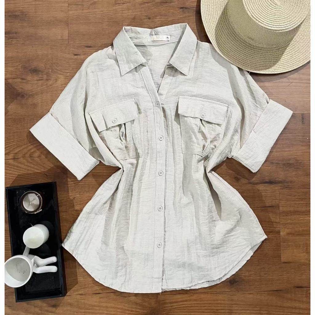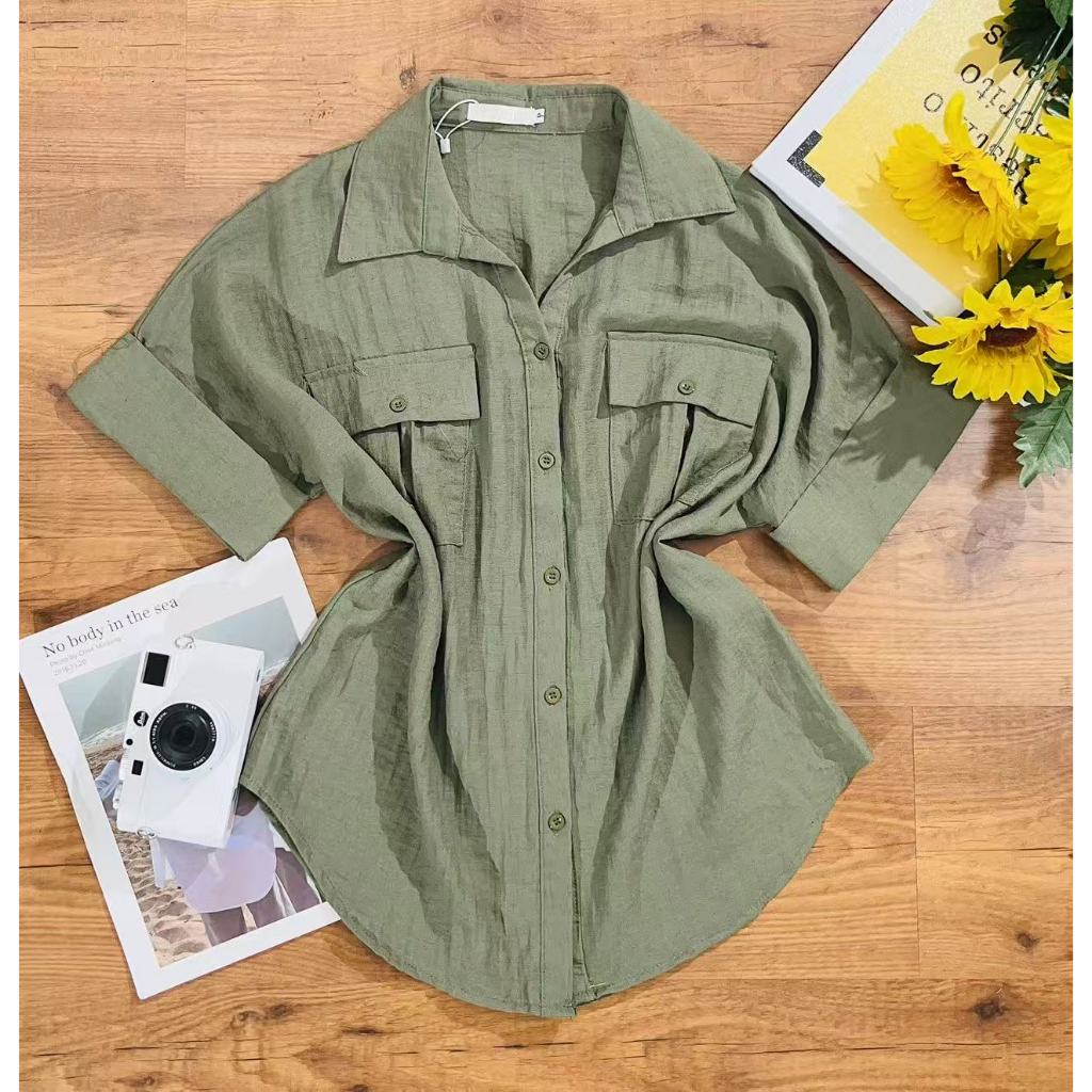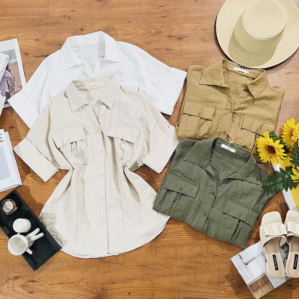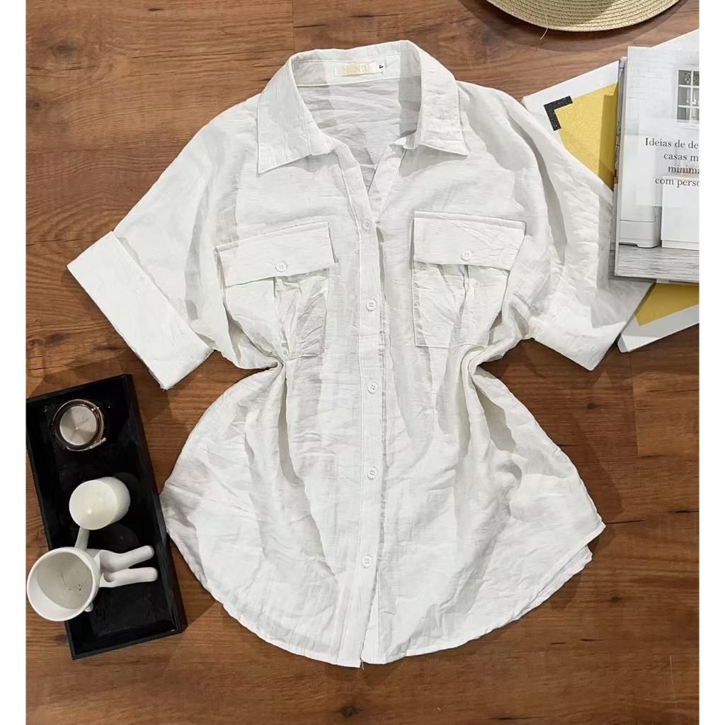 Camisa Manga Curta Feminina Moda Verão Com Bolso HQ65183