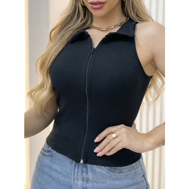 Regata Curta Canelada com Zíper 00167