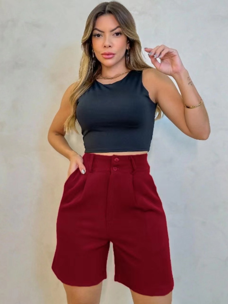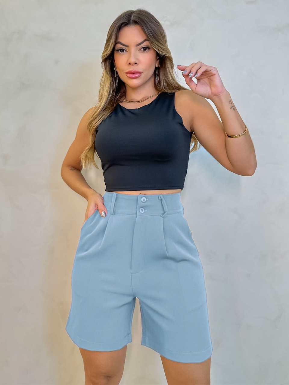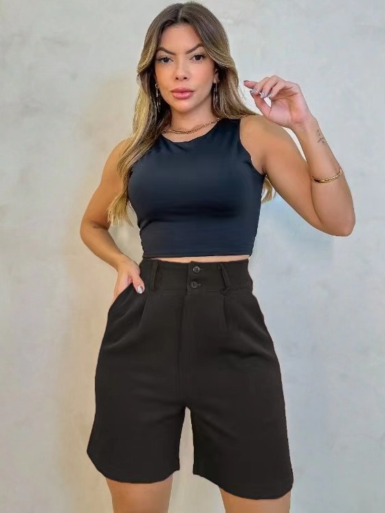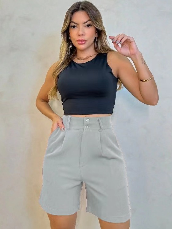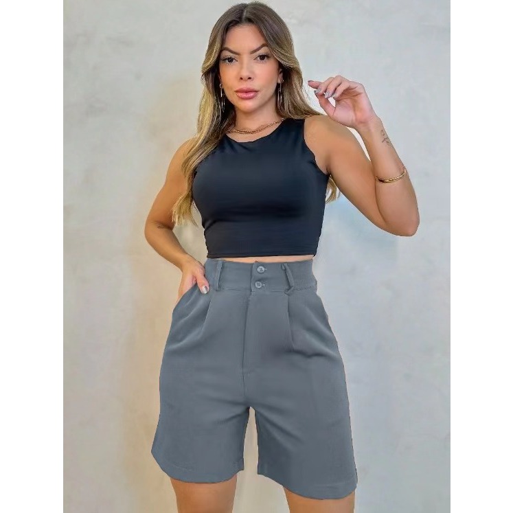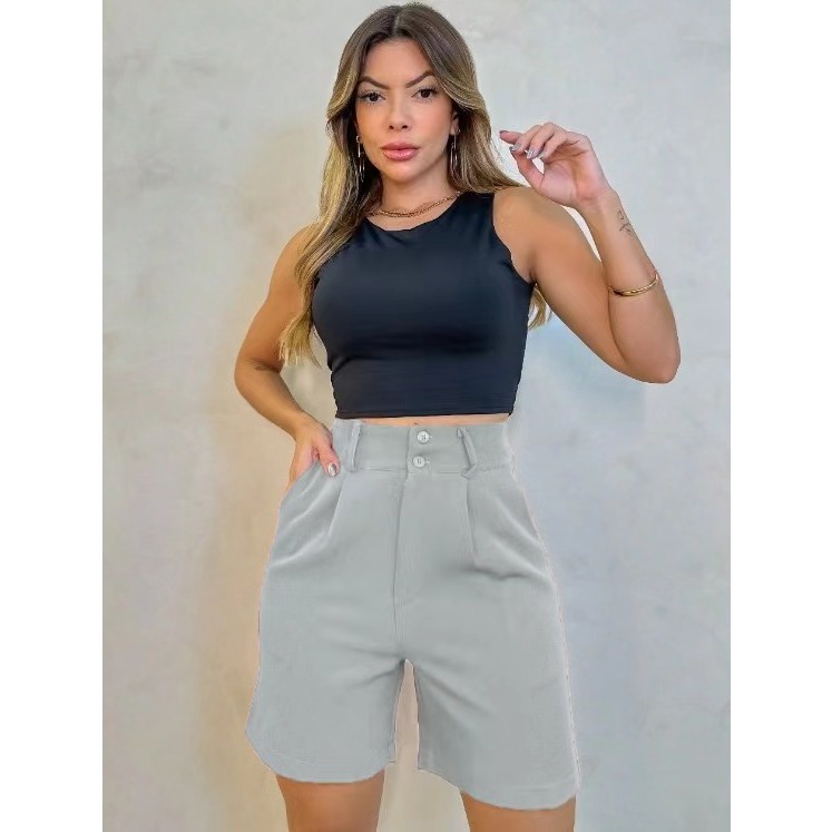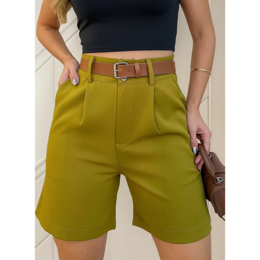 Short Alfaiataria Feminino Elegante Bolso e Barra Casual Conforto Elegante