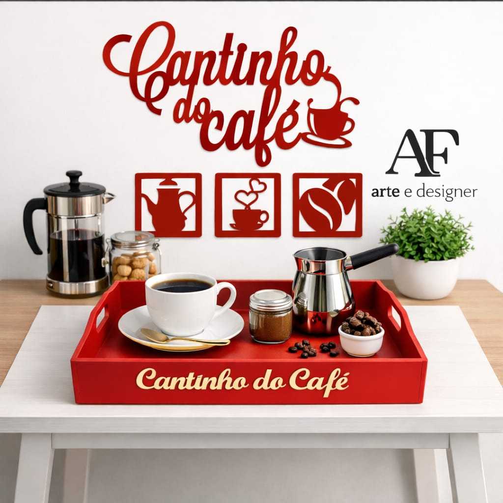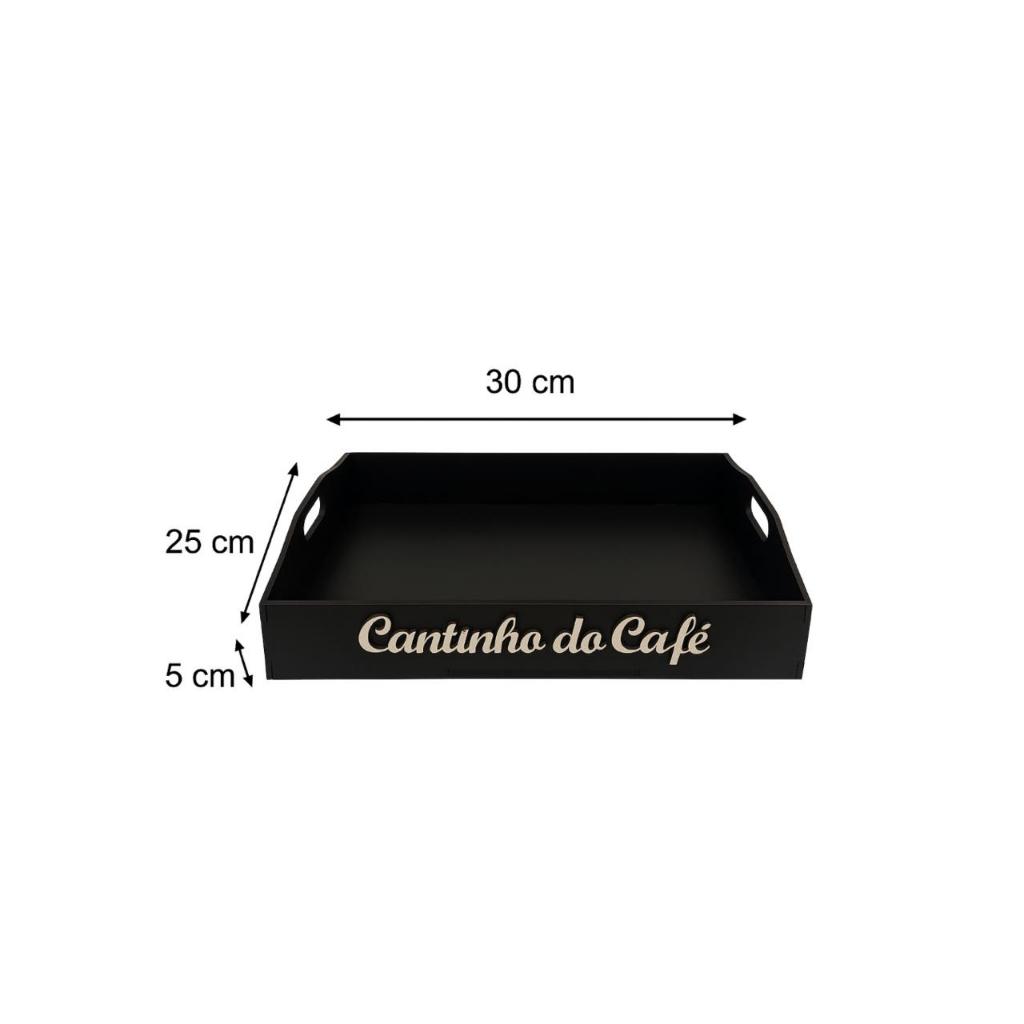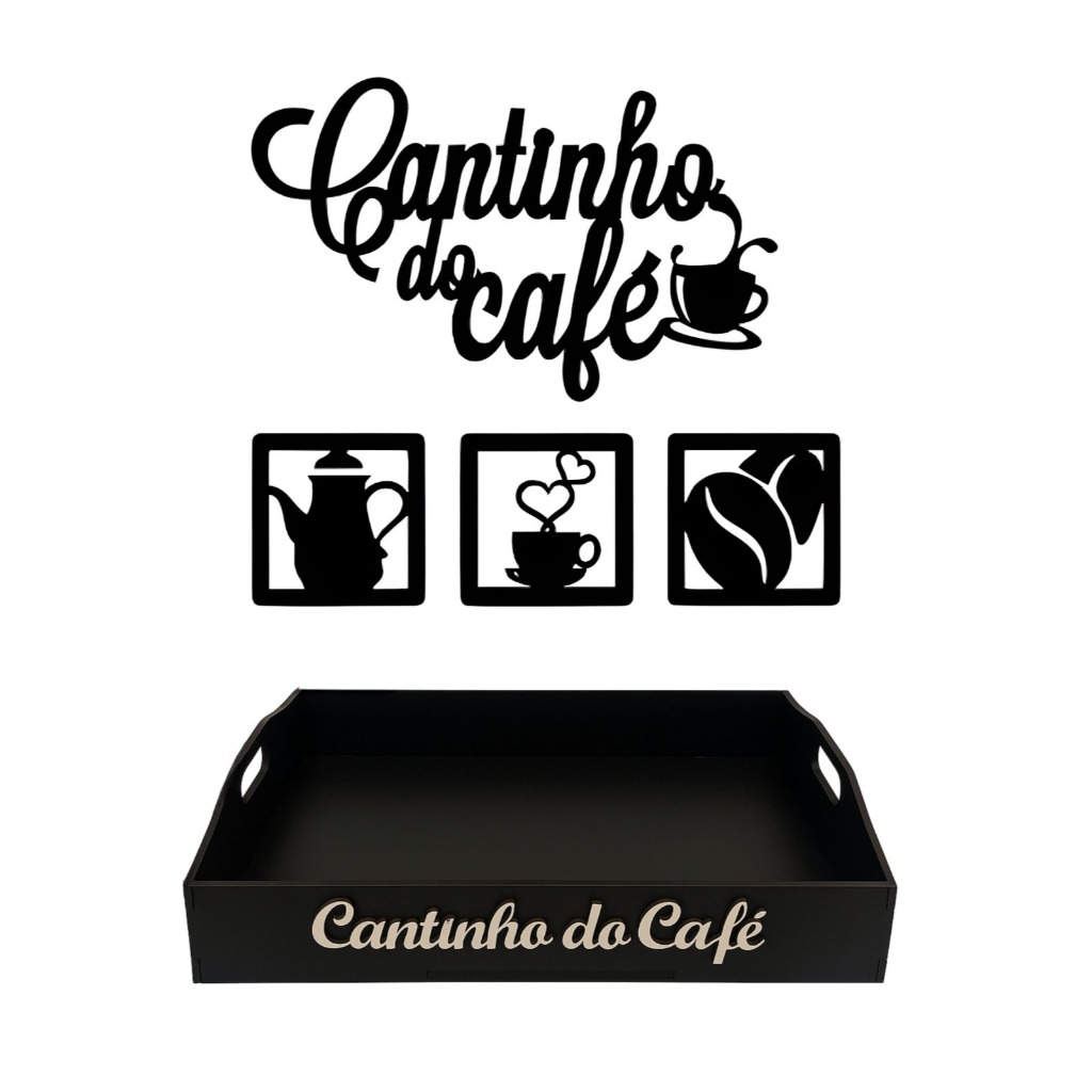 Kit Bandeja 4 MM Lisa E Apliques Cantinho do Café c/ Corações em MDF Preto