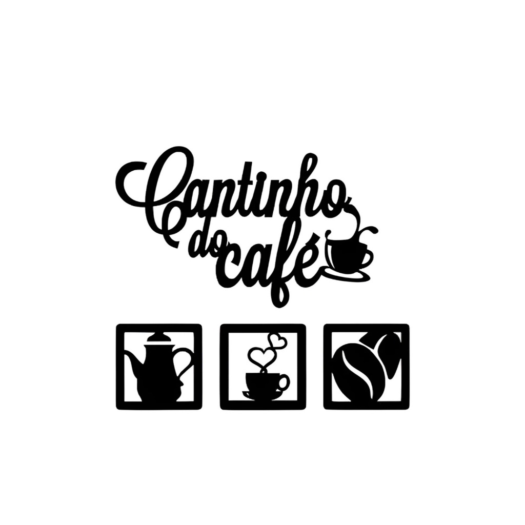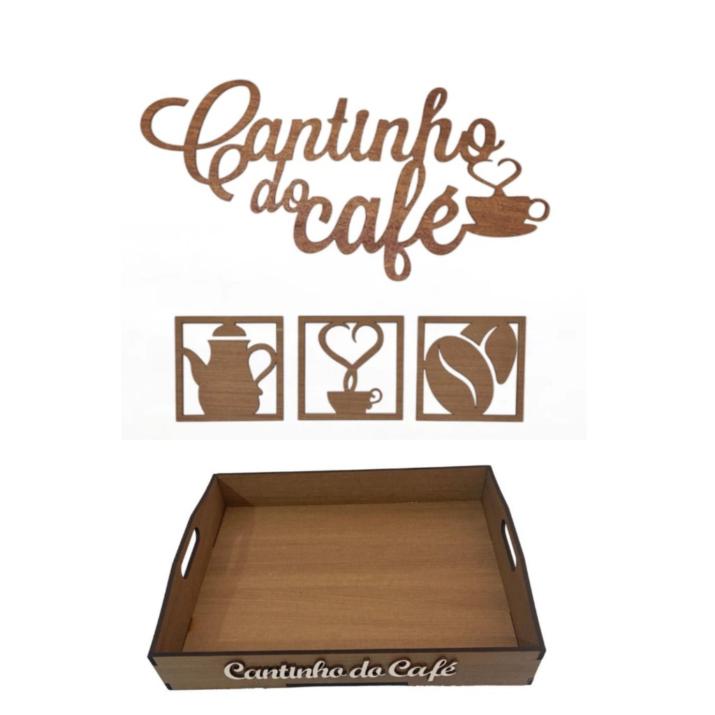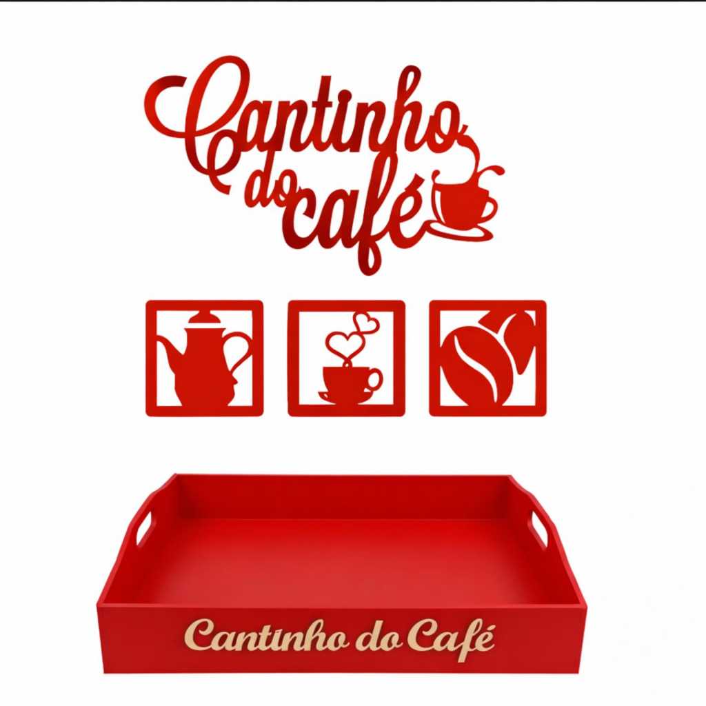 Kit Bandeja 4 MM Lisa E Apliques Cantinho do Café c/ Corações em MDF Preto