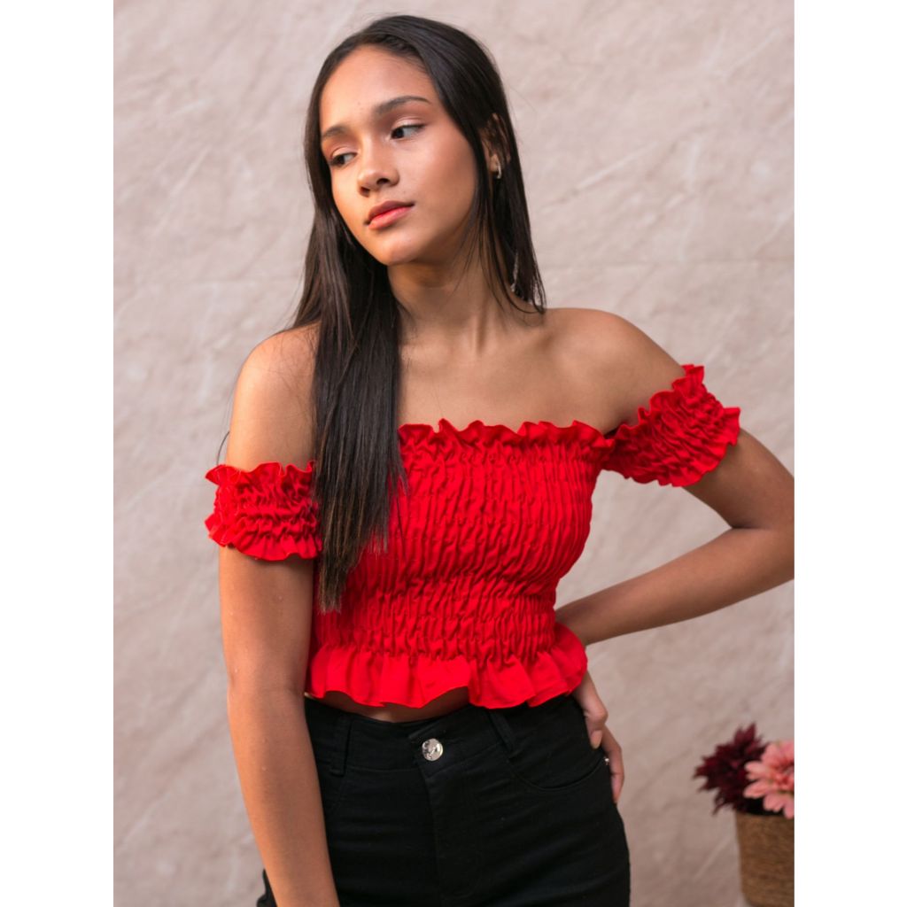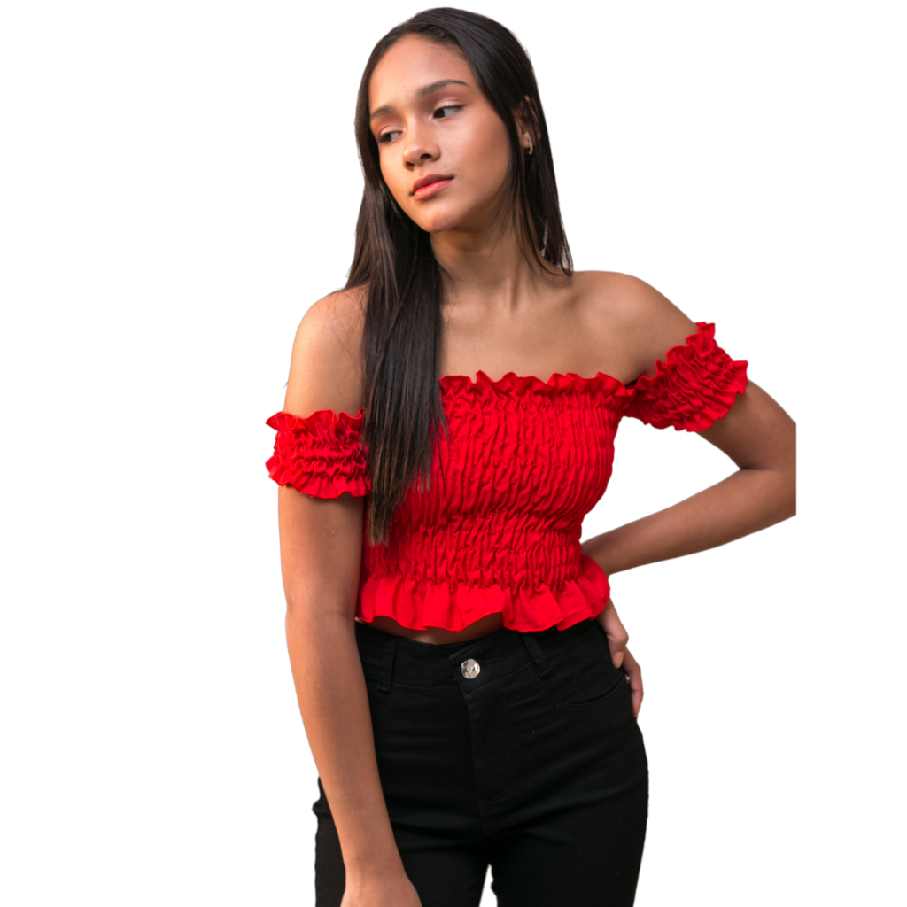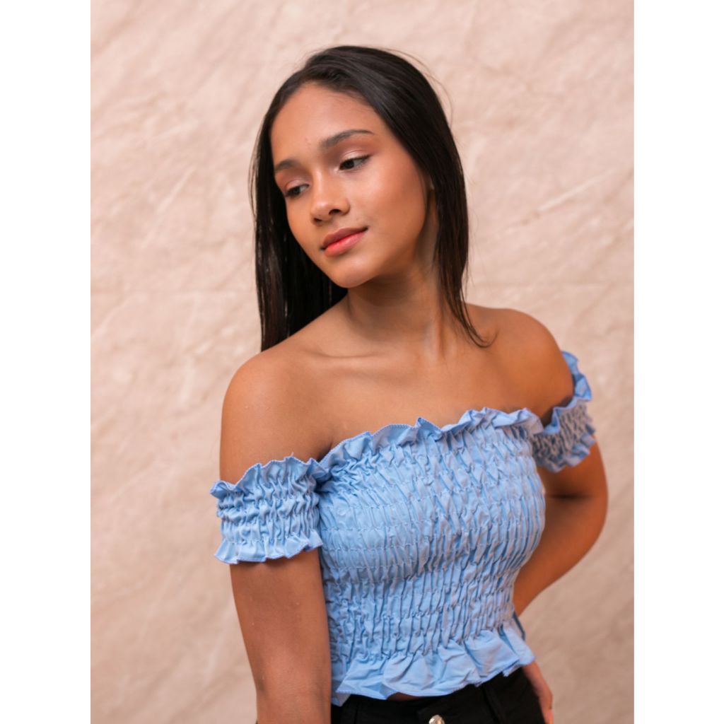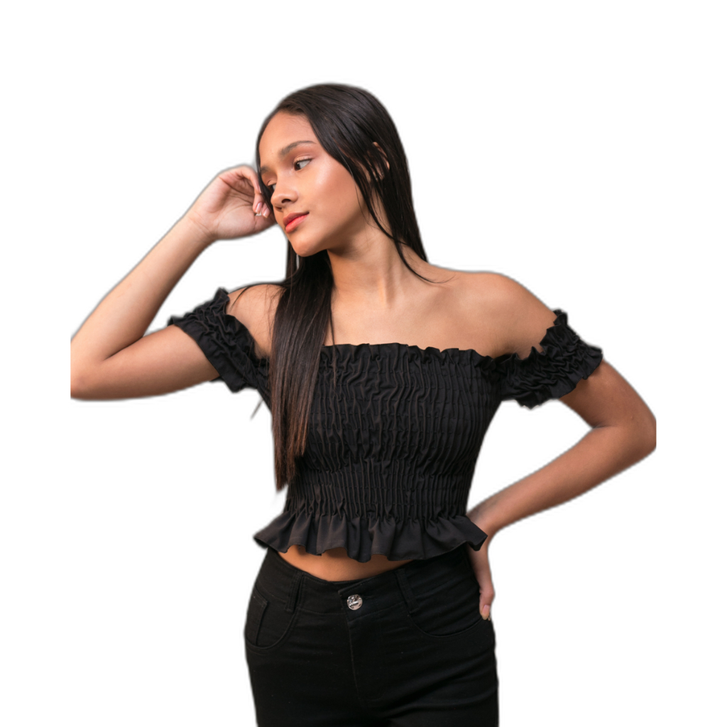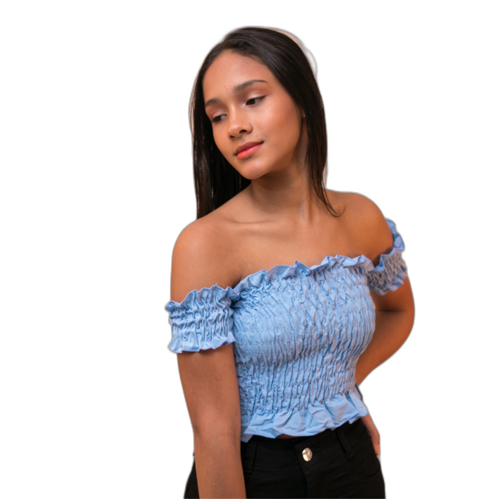Blusa Cropped Infantil Manga Curta Ombro a Ombro Tomara que Caia