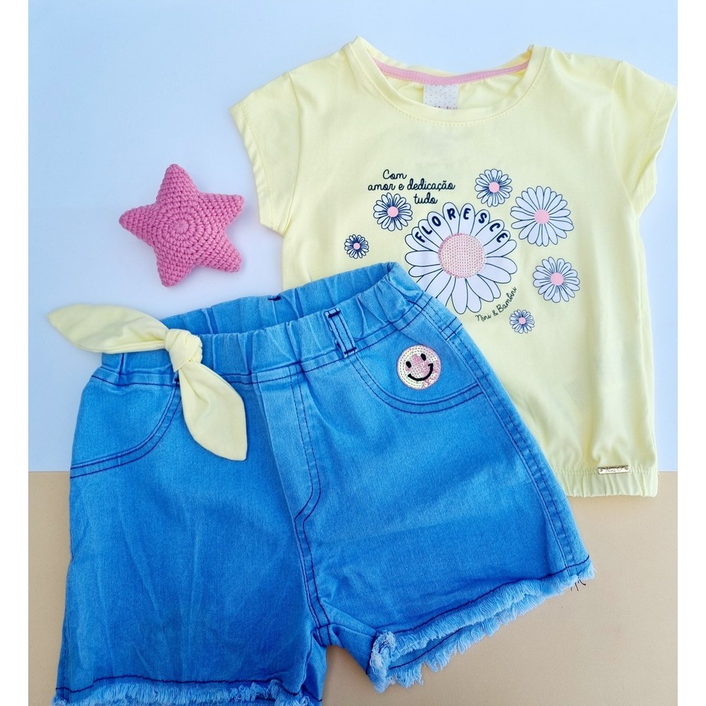 Conjunto Blusa e Shorts Jeans Floresce - Nini Bambini