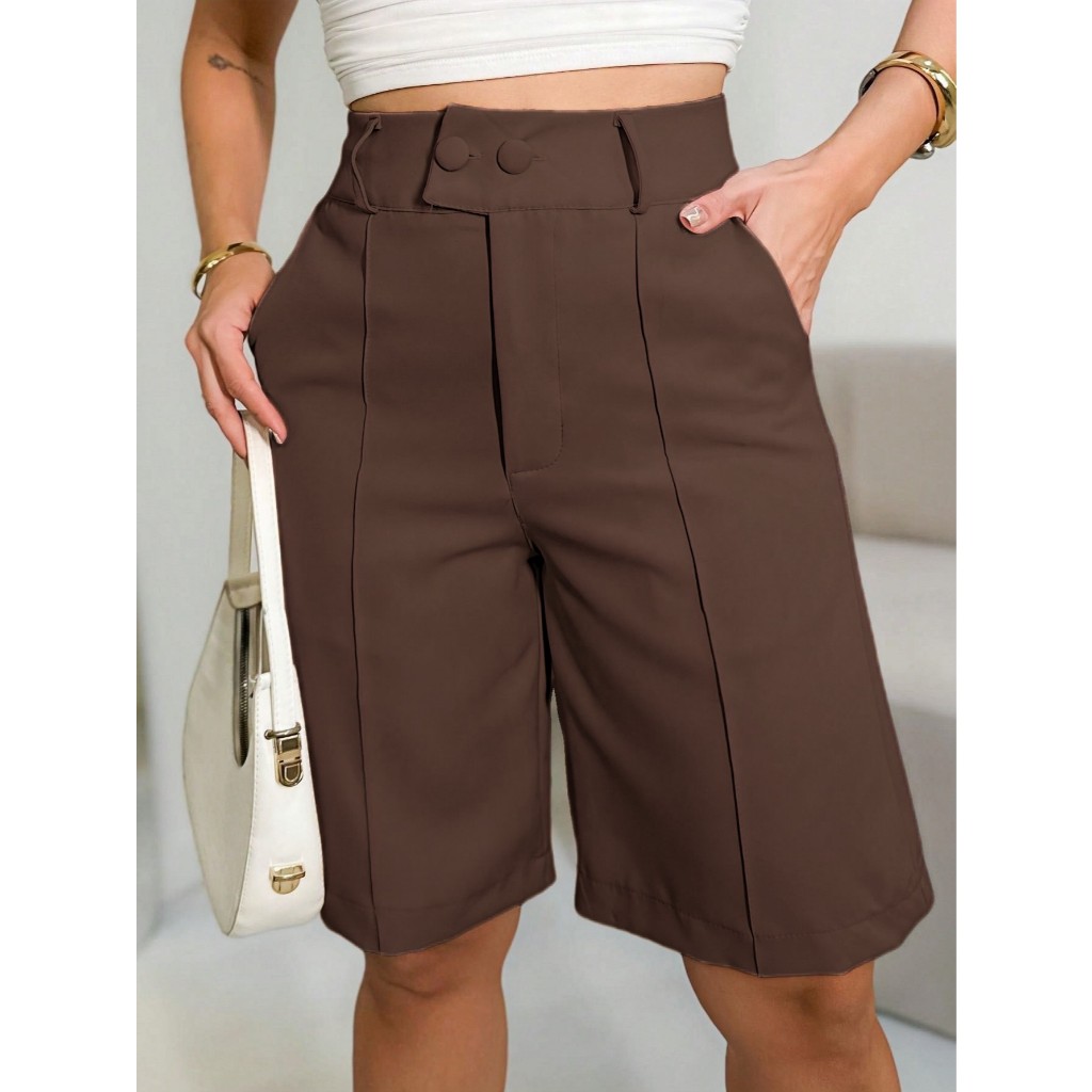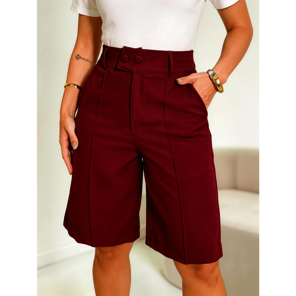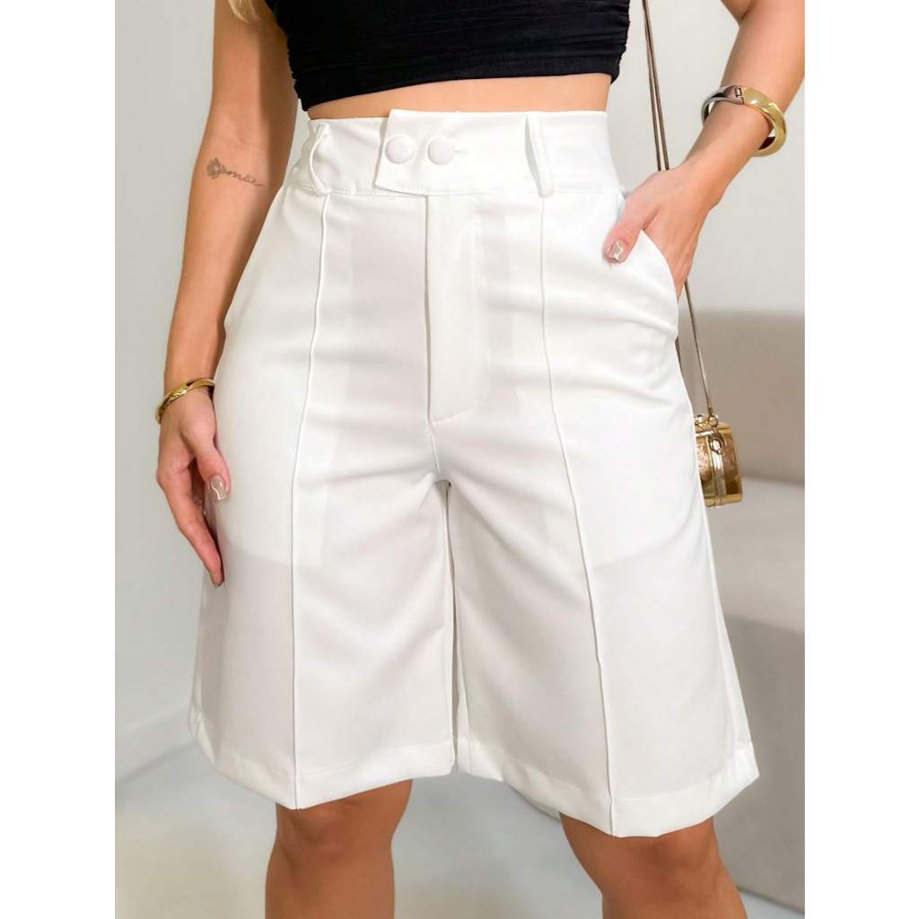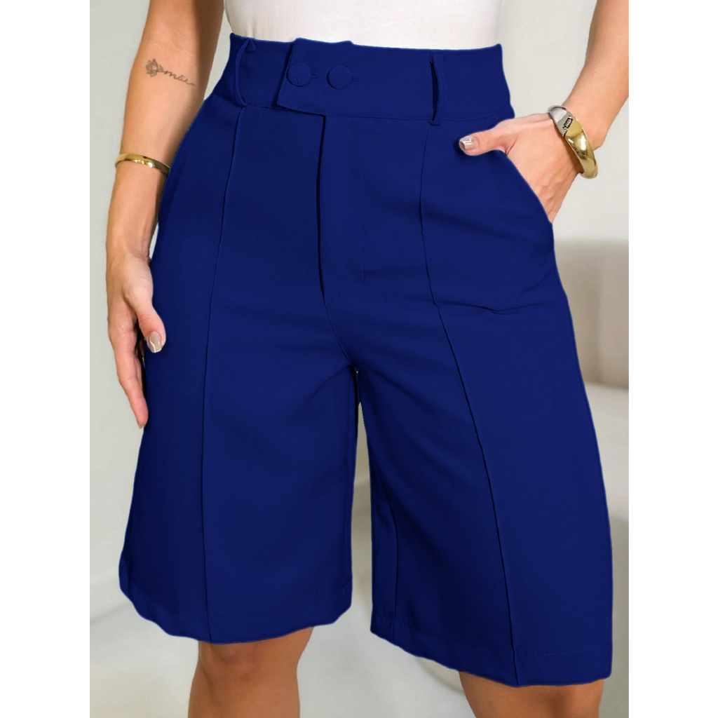 Bermuda Shorts Feminina/ cintura alta/ bolsos laterais/Com Dois botao Tecido De Alfaiataria Tamanho P M G GG G1 G2 G3